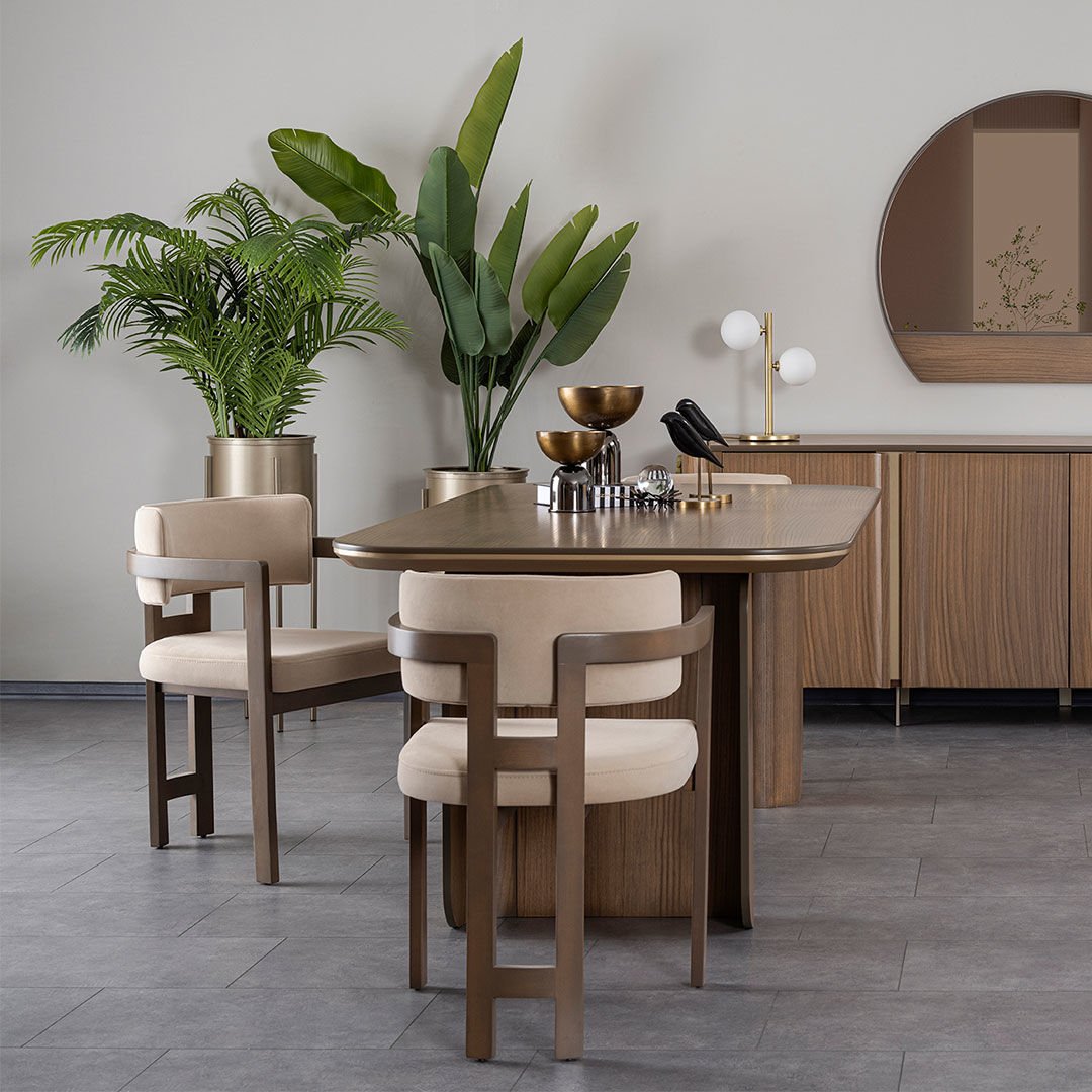 Nefes alan mekanlar yaratmak için tasarlanmış Apricot koleksiyonu dairesel ve çizgisel hatlı formlardan ilham almıştır. Doğal renklerde kullanılan ahşabın pastel tonlardaki metal materyalle uyumu kullanılacak mekana fark yaratıcı bir dinginlik ve derinlik yaratır. Ürün Tanımı: Apricot Masa.   Ürün Malzemesi: İsli meşe doğal ahşap kaplama malzemeden üretilmiştir.    Bakım: Ilık sabunlu su yardımıyla temizlenebilmektedir.   Genişlik: 200 cm    Derinlik: 100 cm    Yükseklik: 78 cm