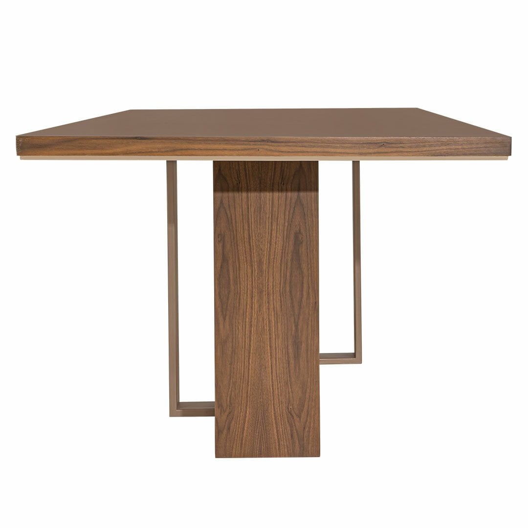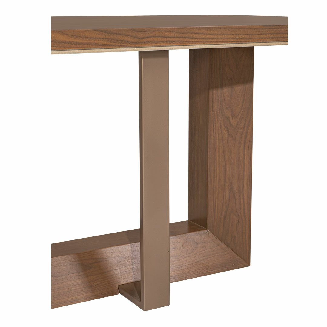 Hareli ceviz kaplama, ve bronz metal kombinasyonunu sofistike ve nitelikli tasarım detayları ile buluşturan Sacramento Masa, stil sahibi tarzı ile göz dolduruyor. Ürün Tanımı: Sacramento Masa.   Üst Tabla Malzemesi: Doğal hareli amerikan ceviz kaplama malzemeden üretilmiştir.    Ayak Malzemesi: Doğal hareli amerikan ceviz kaplamaya ek, estetik bir görünüm elde edilmesi için bronz renge boyanmış metal ayak kullanılmıştır. Bakım: Ilık sabunlu su yardımıyla temizlenebilmektedir.   Genişlik: 200 cm    Derinlik: 100 cm    Yükseklik: 76 cm