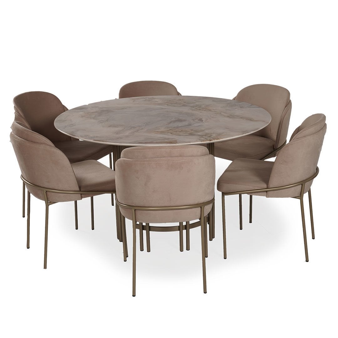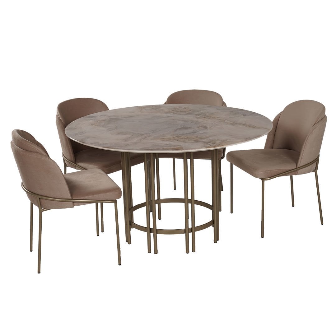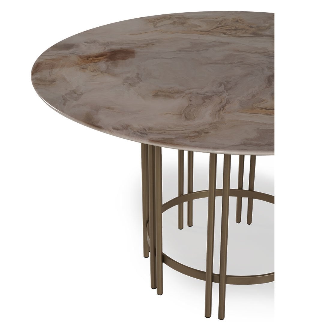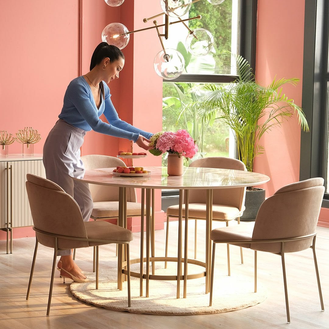 Dairesel formları metalik detaylarla birleştiren Blush Yuvarlak Masa yaşam alanlarına zarafeti ve şıklığı getirmeyi amaçlıyor. Hayatı kolaylaştırırken sadeliği ile de iç mekanlara ışıltı katıyor.Ürün Tanımı: Blush Yuvarlak Masa.   Üst Tabla Malzemesi: Dijital görselleştirilmiş mdf malzemeden üretilmiştir.   Ayak Malzemesi: Metalik kum beji elektrostatik boyalı metal malzemeden üretilmiştir.  Bakım: Ilık sabunlu su yardımıyla temizlenebilmektedir.   Genişlik: 130 cm    Derinlik: 130 cm    Yükseklik: 75 cm