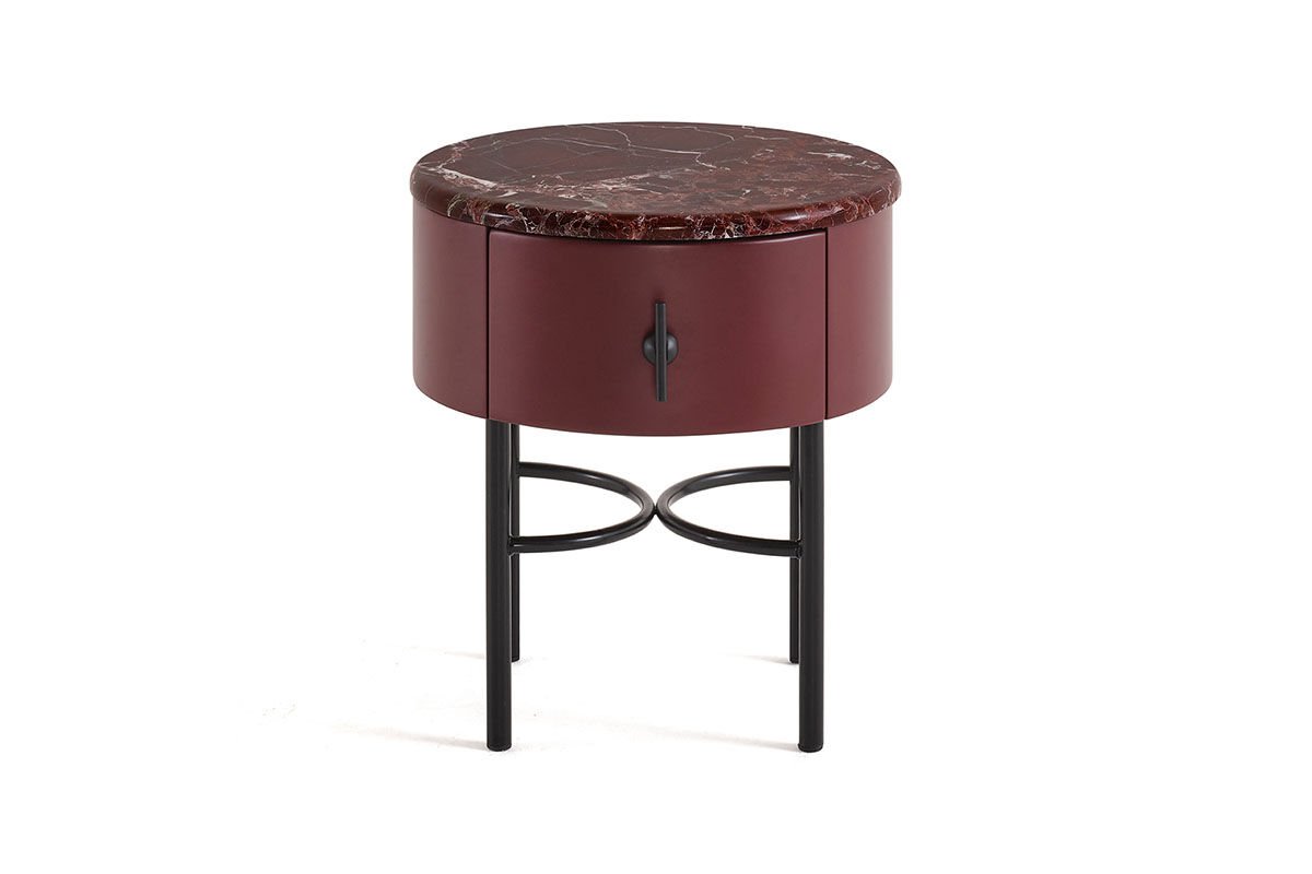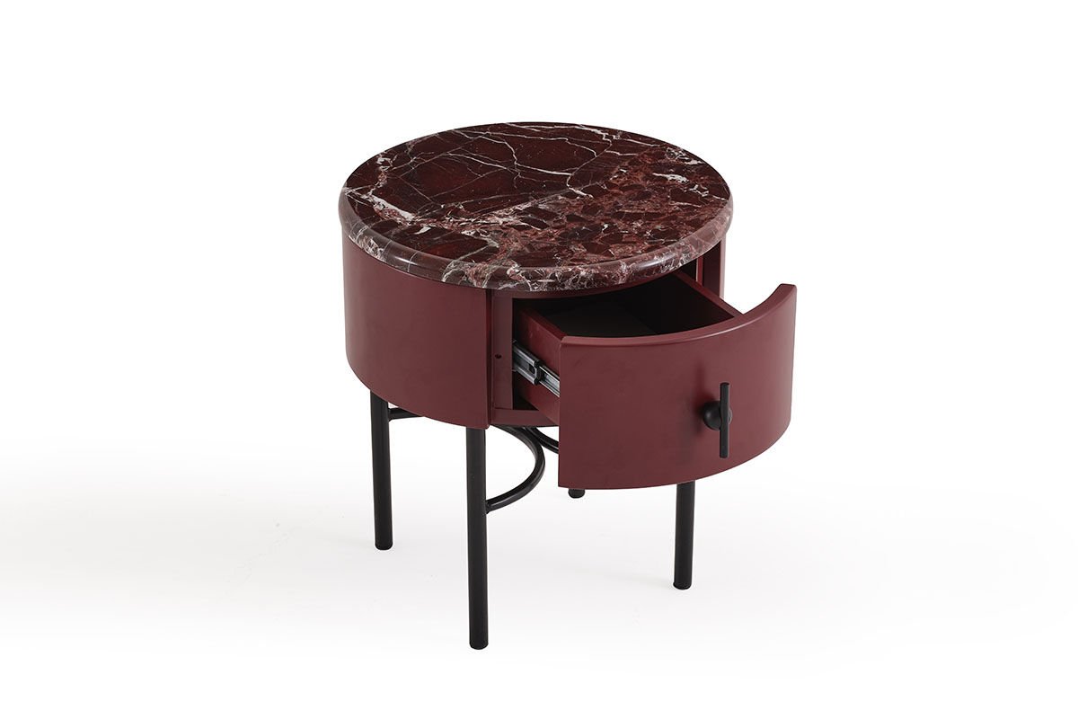 Marzen Yatak Odası, Mardin'de bereketin simgesi olan bordo üzüm ve nar tonlarından ilham alan rengi, yumuşak ve akışkan formlarla buluşturur. Mermer dokular ve mat siyah metal detaylar, yuvarlak ve oval çizgilerle dengelenerek sakin ve rafine bir atmosfer yaratır. Yatak, yumuşak yaslanma hissi veren başlığıyla konforu merkeze alırken; entegre başucu lambası ve USB girişi modern ihtiyaçlara estetik bir çözüm sunar. İnce metal ayaklar tasarıma hafiflik katar. Tek ve çift çekmeceli komodin seçenekleriyle şifonyer, dolap ve makyaj masasında da aynı akıcı tasarım dili sürdürülür. Farklı dolap modül ve ölçü alternatifleri esnek kullanım sunarken, makyaj masalı dolap modülü depolama ve kişisel alanı tek bir yapı altında birleştirir. Ürün Tanımı: Marzen Tek Çekmeceli Komodin.