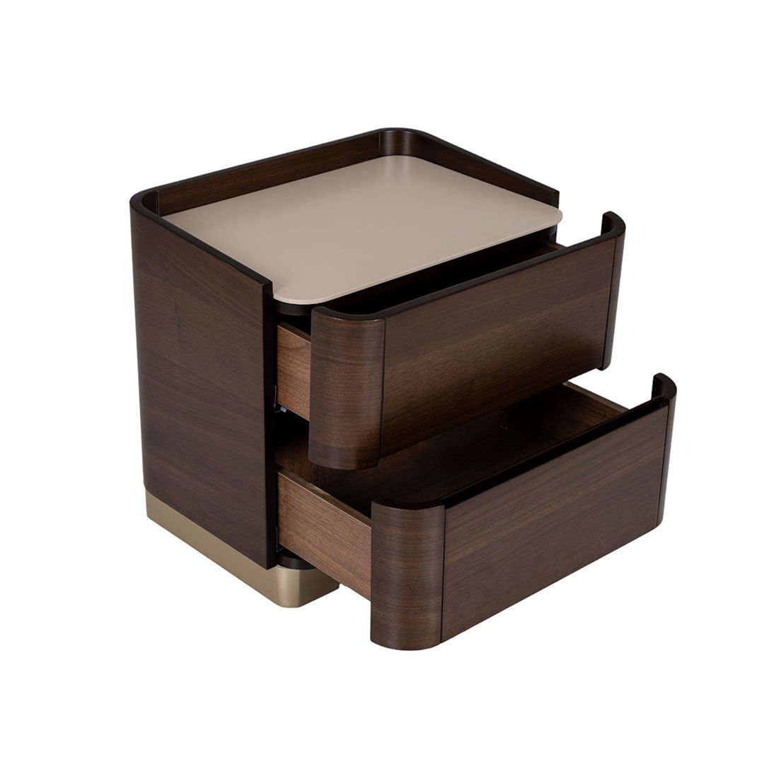 Rafine çizgisi ve lüks tasarım detaylarıyla dikkat çeken Tawny Yatak Odası malzeme ve renk kombinasyonu ile sofistike bir atmosfer yaratıyor. Geniş ve yüksek döşeme başlığı ve bel destekli pufu ile konfor hissini maksimum seviyede hissettirirken ihtiyaca yönelik tamamlayıcı parçaları ile de mekana imzasını taşıyor.Ürün Tanımı: Tawny Komodin.Ürün Malzemesi: Doğal freze amerikan ceviz kaplama, kumsal ipek mat lake malzemeden üretilmiş olup metal kısımlarda kum beji elektrostatik boyalı metalden yararlanılmıştır.Bakım: Ilık sabunlu su yardımıyla temizlenebilmektedir.Genişlik: 60 cmDerinlik: 44 cmYükseklik: 54 cm
