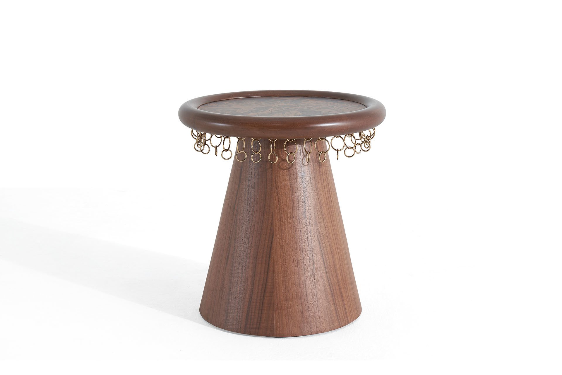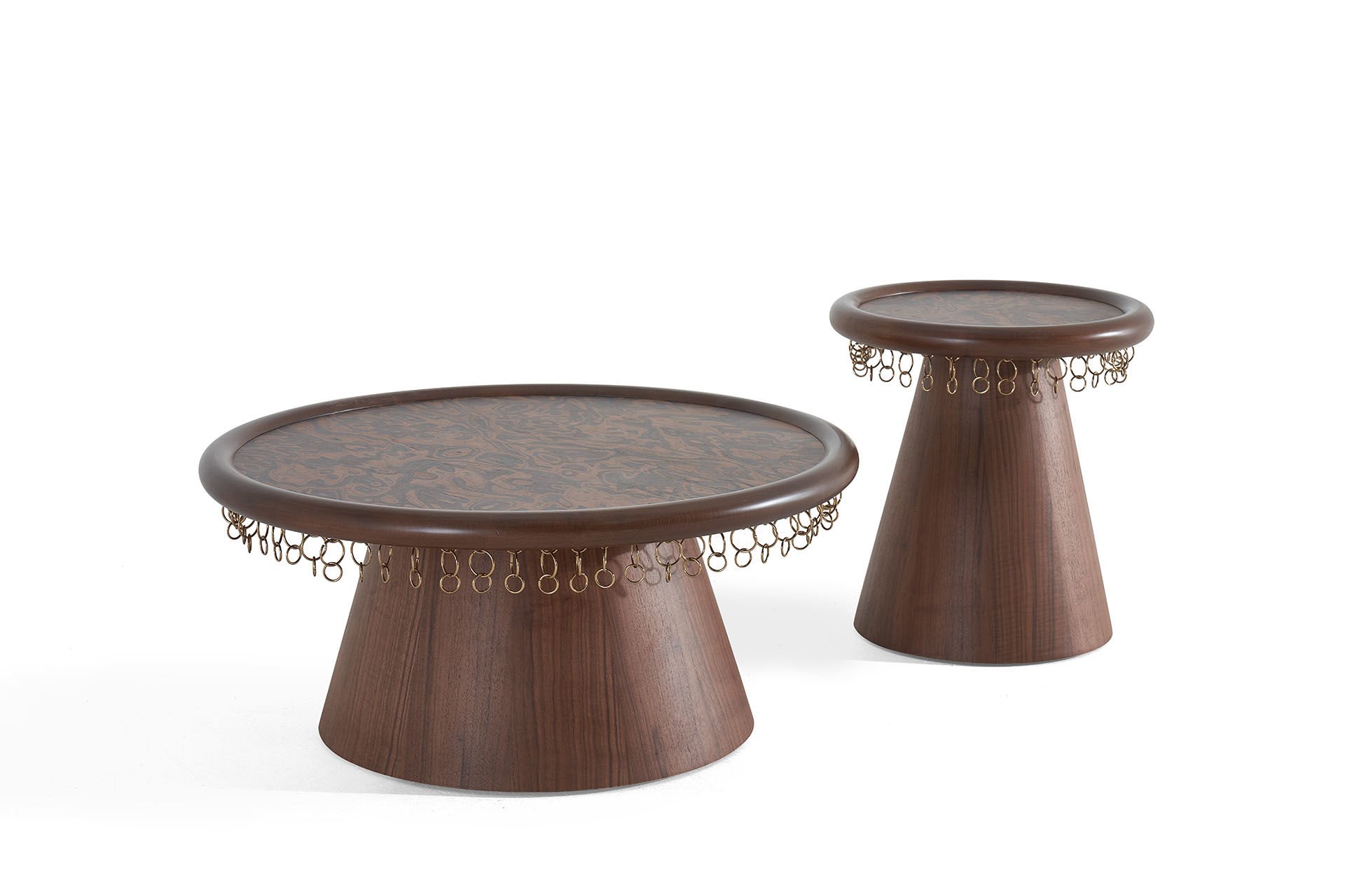 Erbane, Mezopotamya’nın ritmini ve ruhunu modern bir forma dönüştürür. Sehpanın yuvarlak formu erbane’nin hareketini, altındaki sallanan zincirler ise geçmişin yankısını simgeler. Kök kaplama üst tabla, Mezopotamya’nın bereketini yansıtır.Yuvarlak formu erbane’nin hareketini simgelerken, altındaki sallanan zincirler geçmişin yankısını mekâna taşır. Erbane koleksiyonu, geçmişin ruhunu bugünün mekânlarına taşıyan bir köprüdür. Ürün Tanımı: Erbane Yan Sehpa   Ürün Malzemesi: MDF üzeri Macchiato ceviz kaplama ile üretilmiştir. Üst tabla ise koyu kök kaplama ile tamamlanmıştır. Bakım: Ilık sabunlu su yardımıyla temizlenebilmektedir.    Çap: 50 cm    Yükseklik: 50 cm