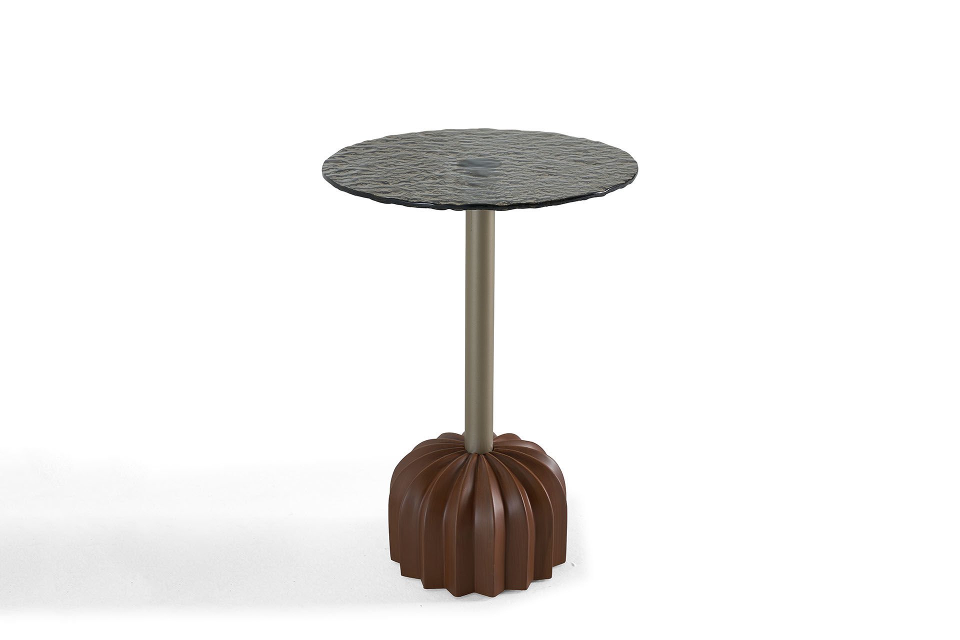 Kamari yemek odası, Mardin’in atmosferinden ve tarihî unsurlarından ilham alır. Kamari masasının yuvarlak formu ve füzyon bronz cam tablası, yivli kubbe formuyla minareleri çağrıştırır. Elips masa ve orta sehpa tablasındaki ahşap kaplama, Mezopotamya Güneşi’nden ilhamla marküteri tarzında tasarlanmıştır. Yan sehpa, minarelerin zarafetini minyatür bir sanat eseri olarak yansıtır. Konsol ve TV ünitesi, bakır el işçiliğini ceviz tonlu masif meseyle buluşturarak geçmişi modern bir yorumla günümüze taşır. Her parça, geçmişin izlerini modern bir tasarımla harmanlar.Ürün Tanımı: Kamari Yan SehpaÜrün Malzemesi: Honey Freze Meşe Doğal Ahşap Kaplama ve Bronz Temperli Füzyon Dokulu Cam malzemeden üretilmiştir.Bakım: Kolay çıkabilen lekeler için sabunlu su kullanılmalı, temizlerken kimyasal madde tercih edilmemelidir. Çap: 40 cm Yükseklik: 55 cm