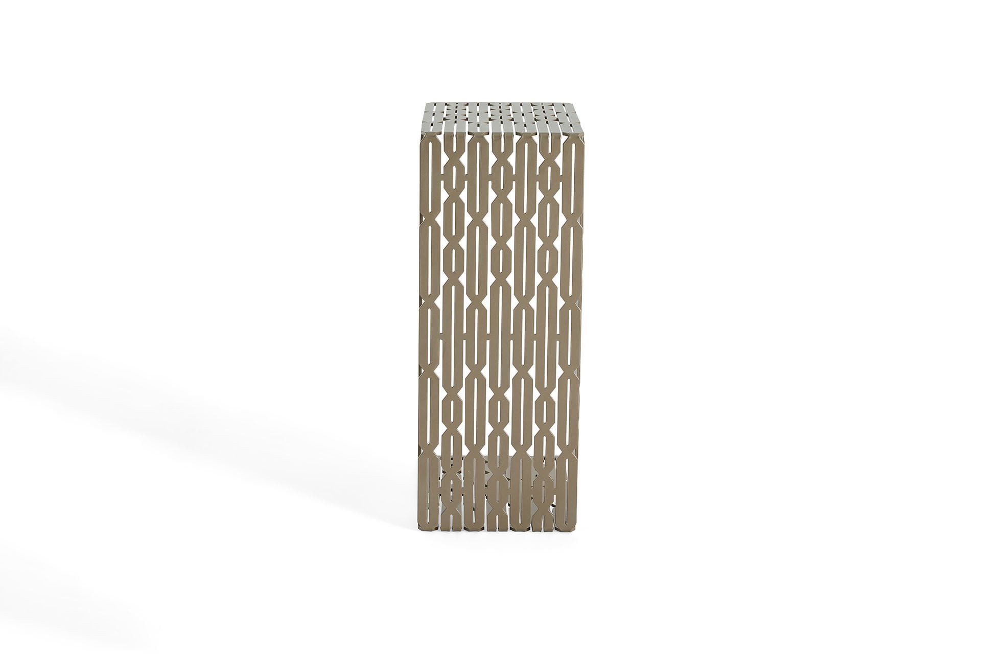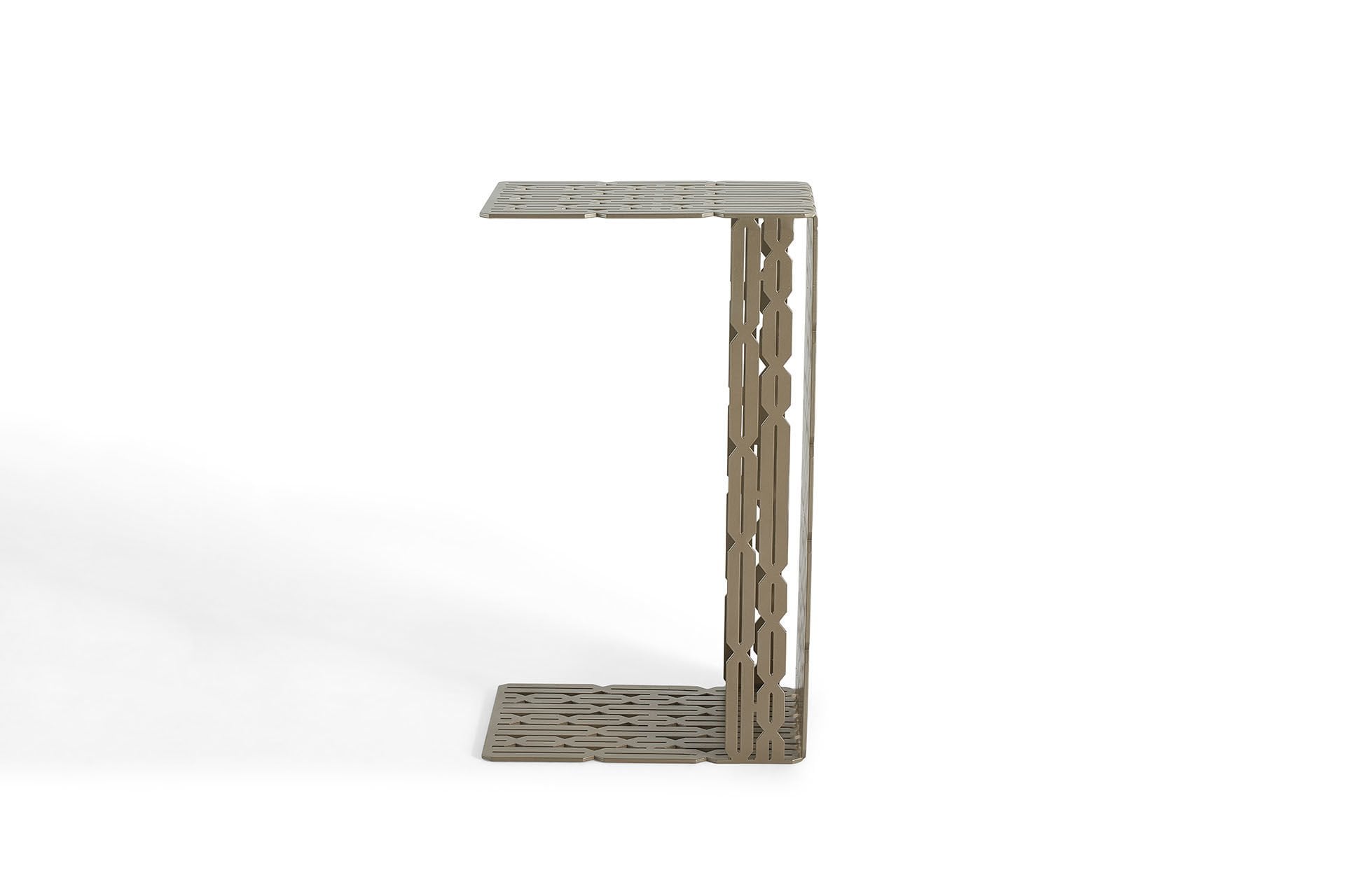 Zencerek motifi, Mardin'in kültürel varlığının ve insanların bir arada tutan güçlü bağlarının sembolüdür. Bu güçlü simgeden ilham alarak tasarlanan C Sehpa, modern formlarla geleneksel bir hikayeyi buluşturuyor. Şık ve fonksiyonel yapısıyla her alana uyum sağlayan sehpa, zencerek motifi sayesinde yalnızca bir mobilya değil, aynı zamanda bir bağın ve geçmişle geleceği birleştiren bir hikayenin temsilcisidir.Ürün Tanımı: Linka C SehpaÜrün Malzemesi: Metalik kum beji elektrostatik boyalı metal malzemeden üretilmiştir.Bakım: Kolay çıkabilen lekeler için sabunlu su kullanılmalı, temizlerken kimyasal madde tercih edilmemelidir.  Genişlik: 25 cm Derinlik: 37 cm Yükseklik: 63 cm