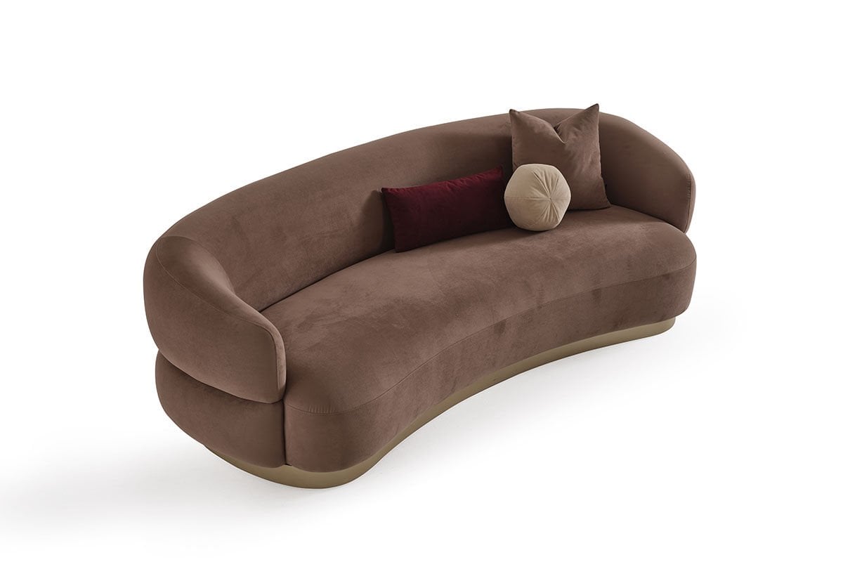 Mira, modern tasarım anlayışını yumuşak hatlarla buluşturarak mekâna sakin ve güçlü bir karakter kazandırır. Kavisli sırt ve oturum yapısı, kullanıcıyı saran ergonomik bir konfor sunarken kesintisiz yüzey algısı tasarımın heykelsi etkisini güçlendirir. Fazlalıktan arındırılmış formu, bulunduğu mekânda dengeli ve dikkat çekici bir duruş sergiler. Çizgisel baza detayı, yumuşak hacimli döşemeye zarif bir kontrast oluşturarak tasarımın modern ve sağlam karakterini vurgular. Zamansız form dili ve rafine detaylarıyla Mira, yalnızca bir oturma elemanı değil, mekânın atmosferini tanımlayan güçlü bir tasarım ifadesidir.Ürün Tanımı: Mira Dörtlü Koltuk.