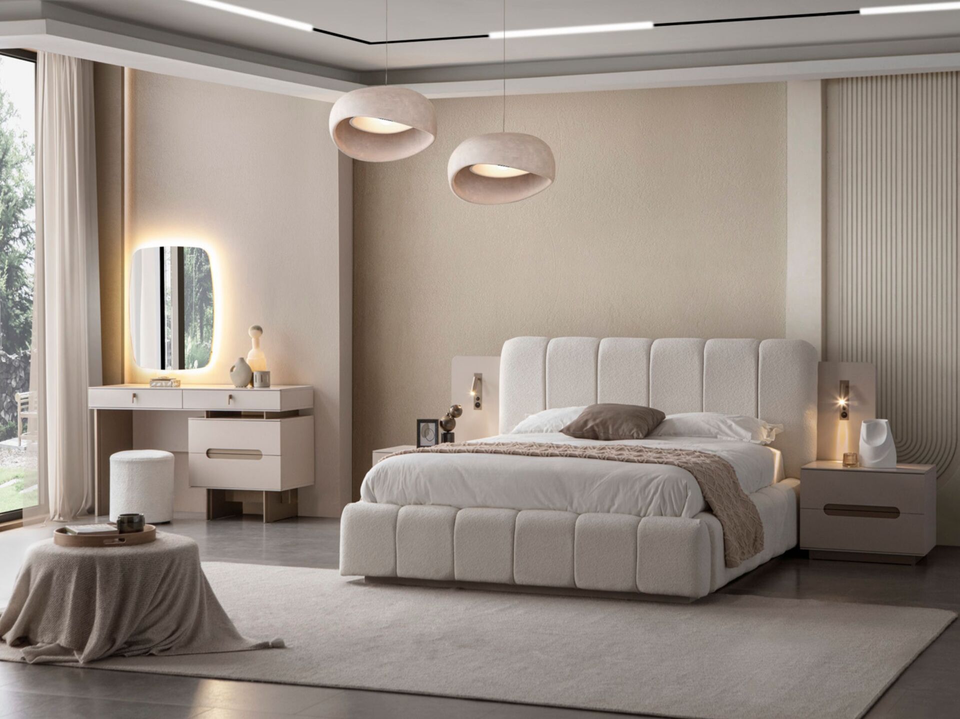 Takım standart içeriği 1 adet 6 kapaklı gardırop,1 adet başlıklı bazalı karyola, 1 adet aynalı şifonyer, 2 adet komodinden müteşekkildir.