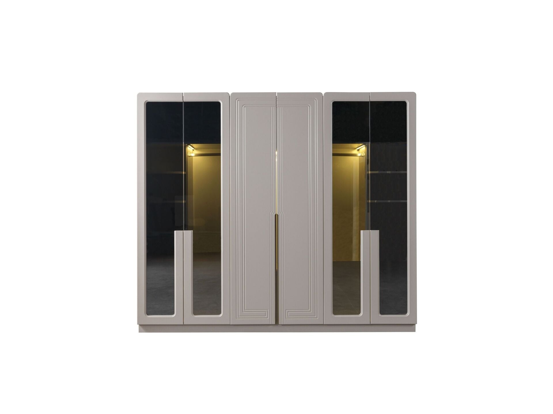 Dolap bir bütün şeklinde imal edilmektedir. Ahşap kapaklar ve dış görünür yüzeyler MDF malzemeden imal edilmiştir. Ahşap kapaklar yeni nesil renk kaplama olarak üretilmiştir. Kabarma ve solma görülmez. Yan yüzeyler de aynı renktedir. Dilediğiniz kapak cam kapak olarak üretilebilir. Dolap içerisinde ki tüm askılıklar LED aydınlatmalıdır. İç bölmede raylı çekmeceler yer alır.