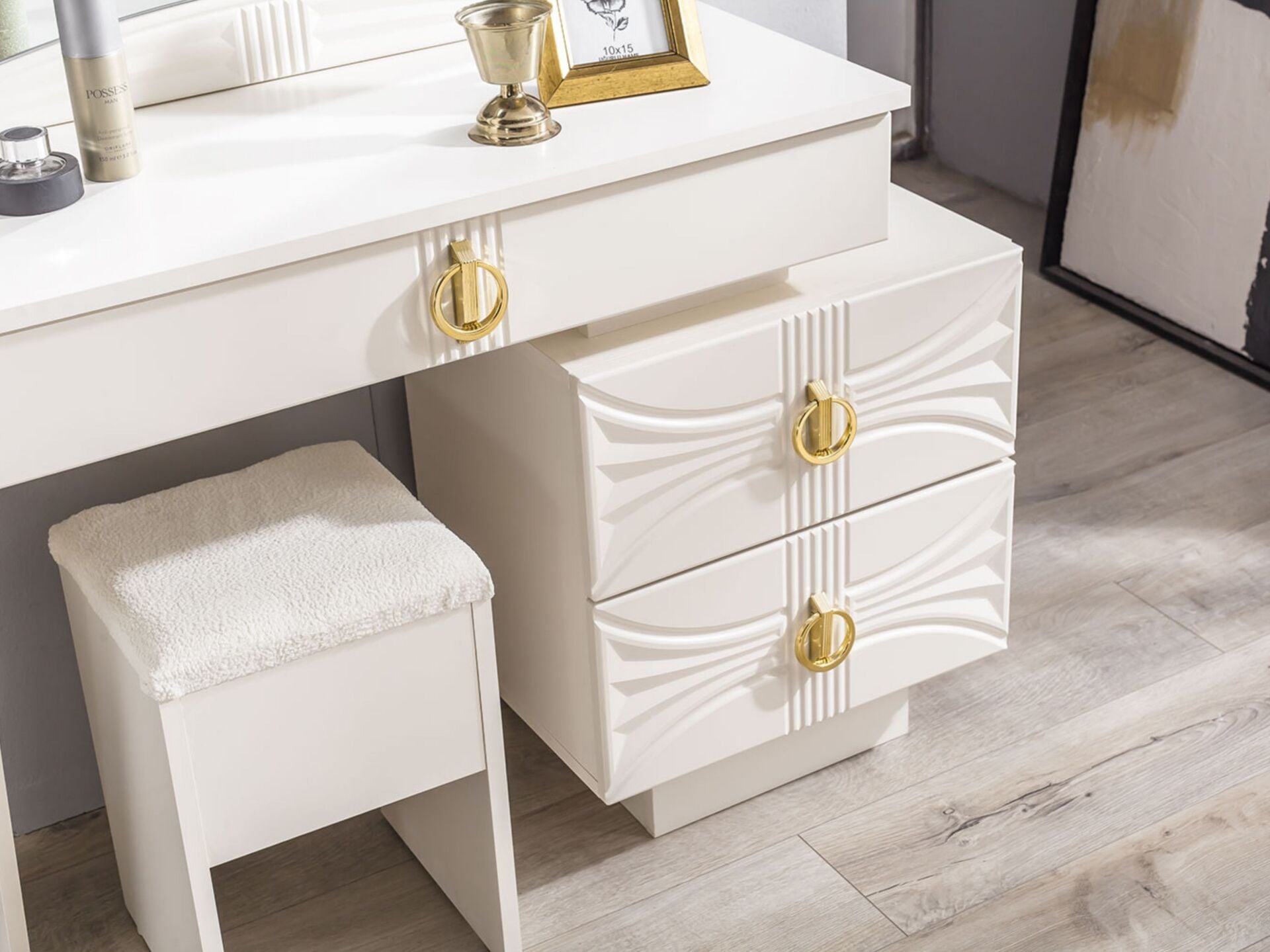 Şifonyer Özelliği Şifonyer üst tablası MDF malzemedir. 3 adet çekmeceye sahiptir. Çekmeceler ray ve yavaşlatıcı kullanılarak imal edilmiştir. Mukavemete ve çizilmeye dayanıklıdır. Ayaklar ahşap malzemedir.