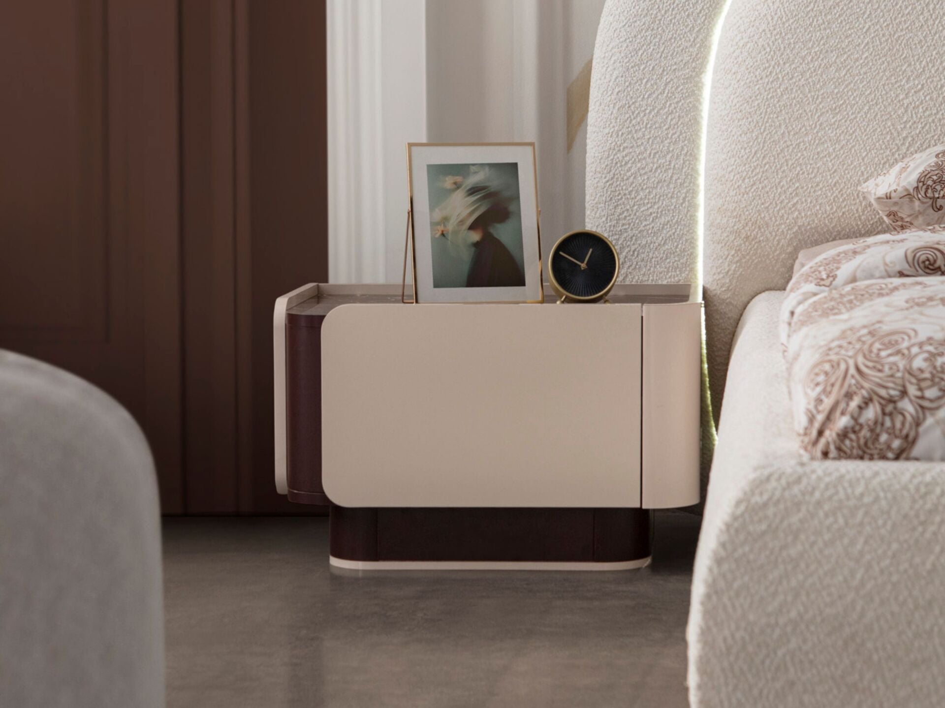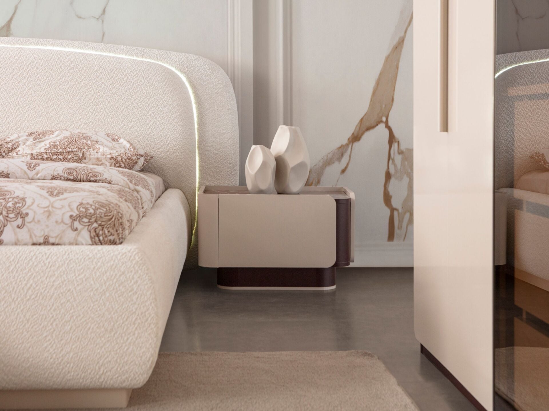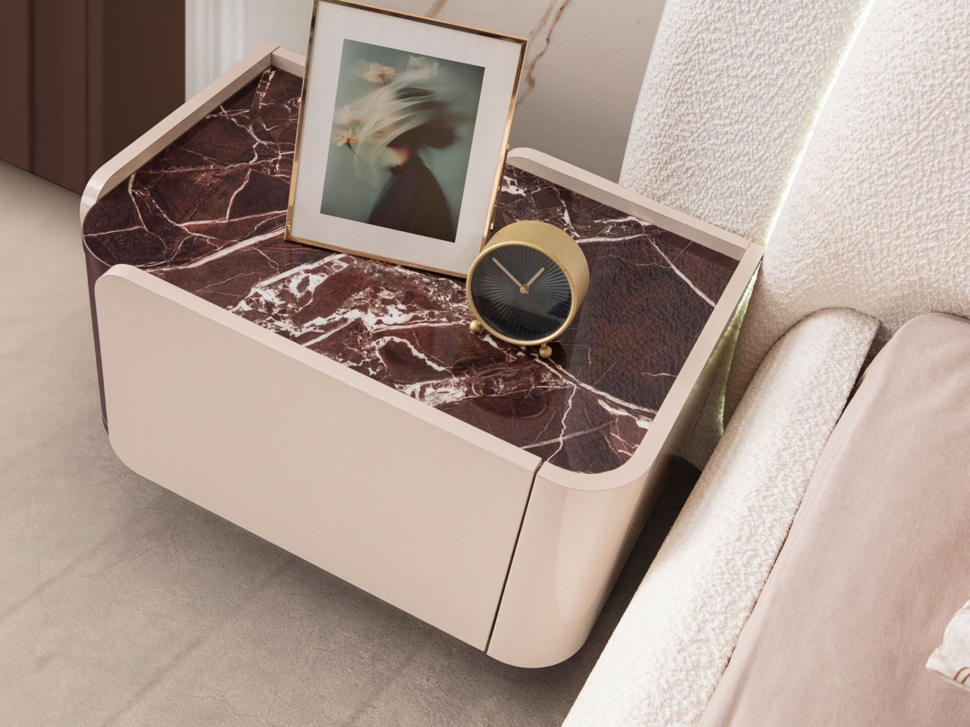 Komodinlerin 1. sınıf suntelam malzemedir. Üst tabla mermer desen baskılı olarak üretilmiştir. 1 adet çekmeceye sahiptir. Komodinler ahşap ayaklı olarak imal edilirler.