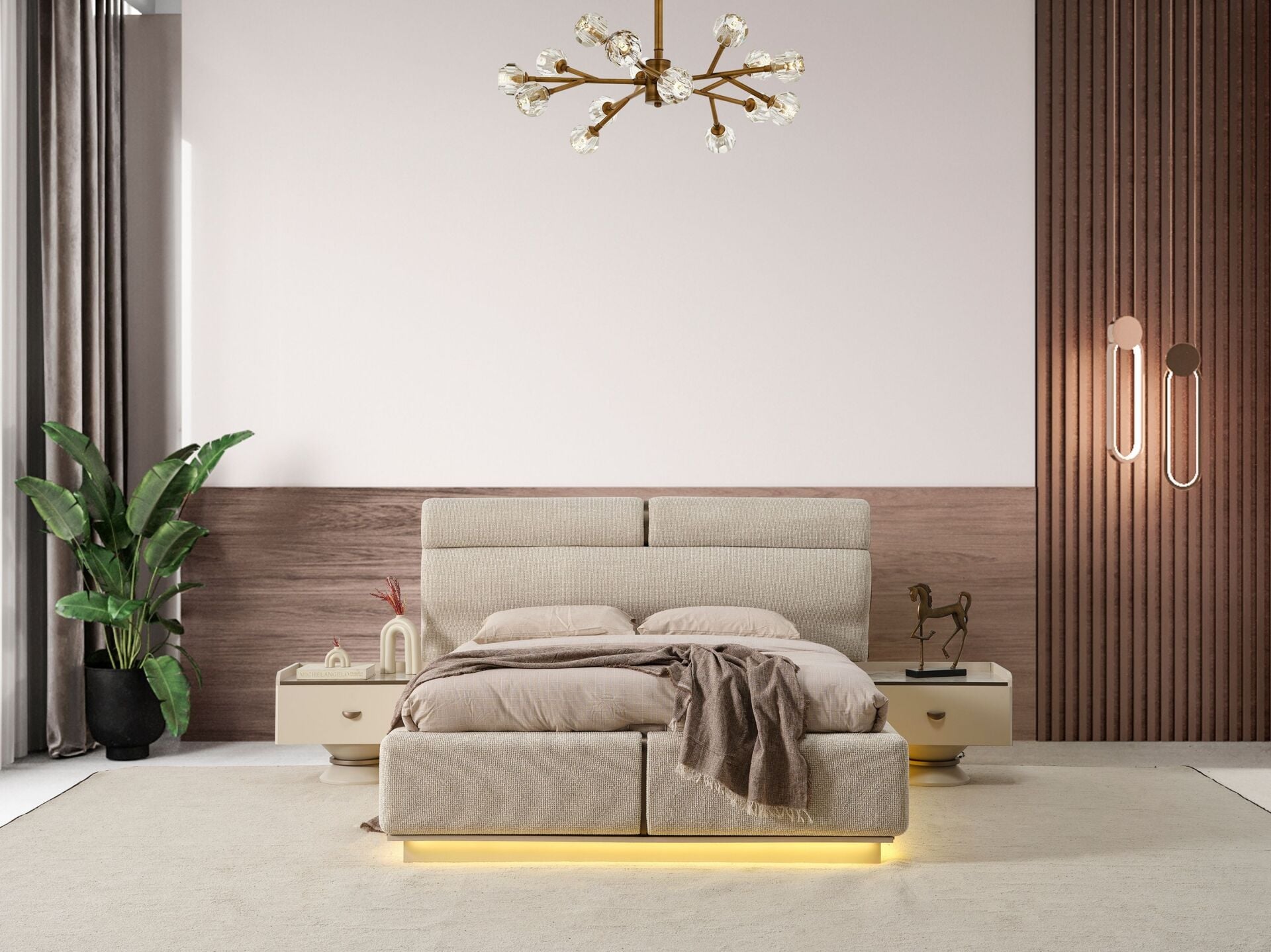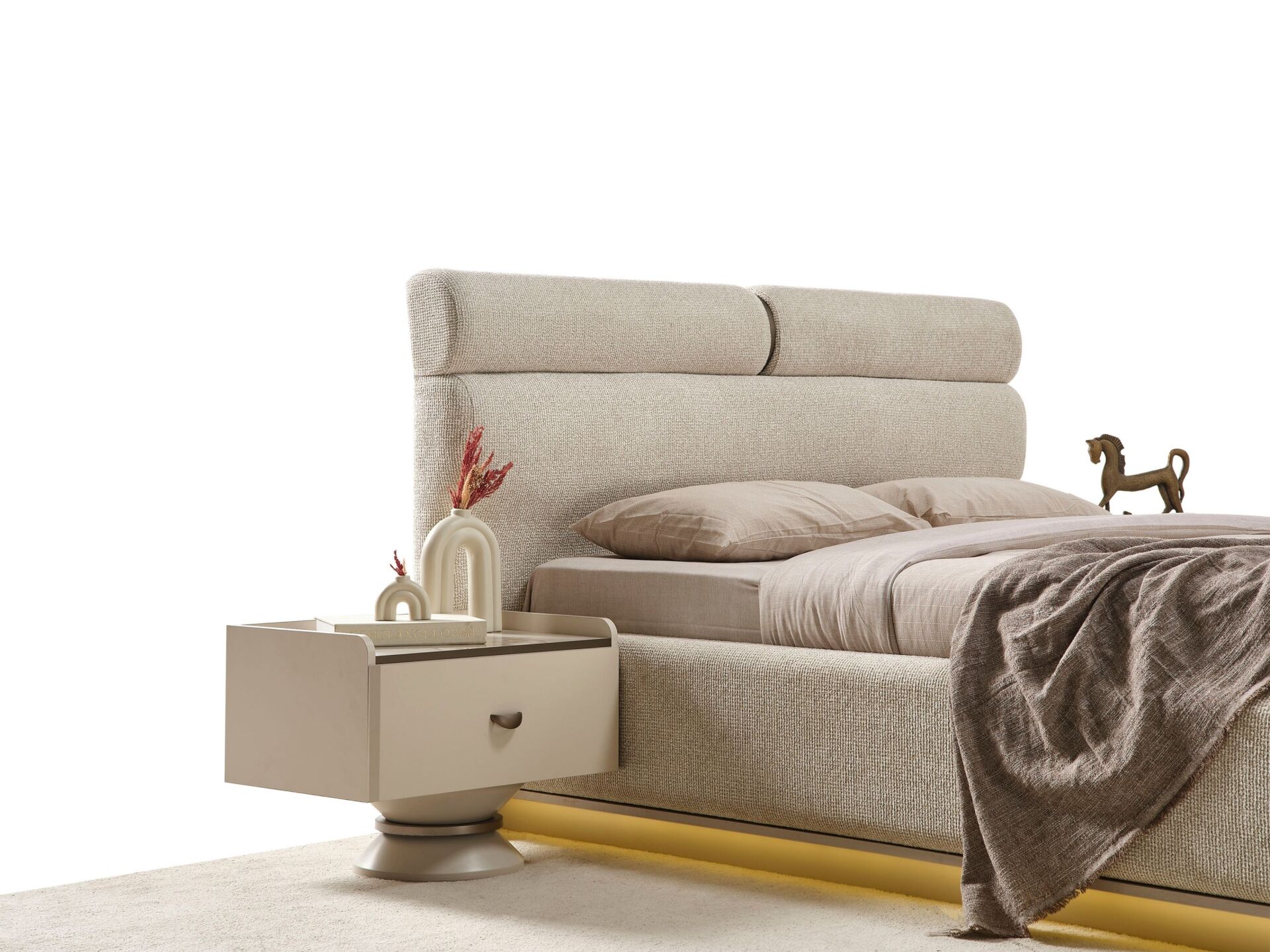 Komodinlerin dış yüzeyleri 1. sınıf suntelam malzemedir. 1 adet çekmeceye sahiptir. Komodinlerin üst tablası mermer desen kaplama olarak üretilir.Komodinler ahşap ayaklı olarak imal edilirler. Ürünü modüler olarak ayrı ayrı satın alabilirsiniz.