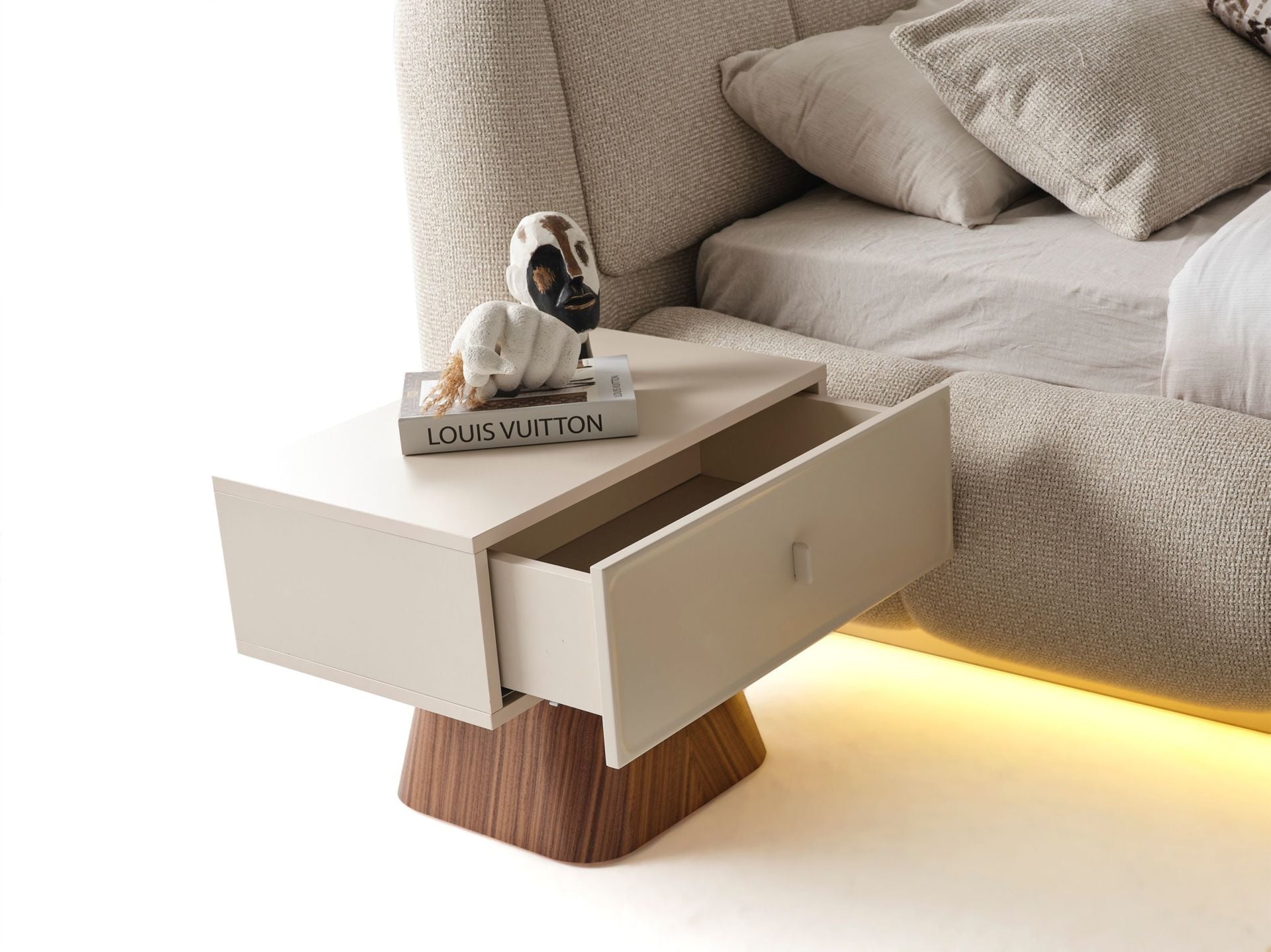 Komodinlerin dış yüzeyleri MDF malzemedir. 1 adet çekmeceye sahiptir. Komodinler ahşap ayaklı olarak imal edilirler. Ürünü modüler olarak ayrı ayrı satın alabilirsiniz.