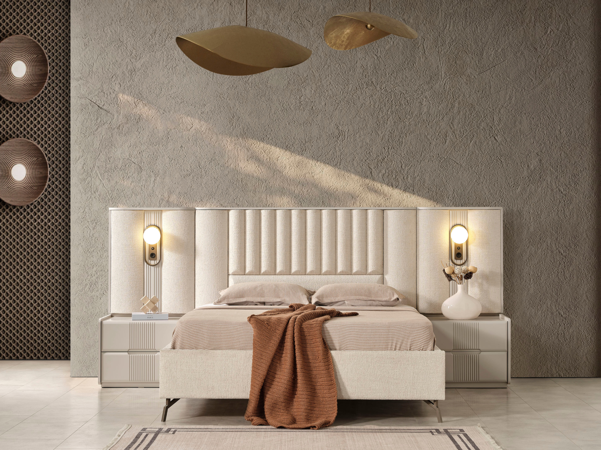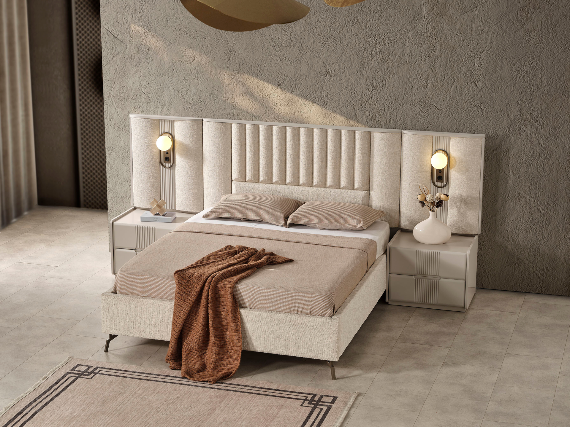 Ürün başlıklı bazalı karyola biçimindedir. Başlık kumaş kaplıdır. Başlık çerçevesi MDF malzemedir. Baza fonksiyonel olarak bölümlendirilmiştir. Başlık çerçevesine dahil edilmiş dekoratif anahtarlı gece lambaları mevcuttur. Gece lambaları altında telefon şarjı ya da okuma lambası için güç kaynağı olarak kullanabileceğiniz her iki tarafında birer adet olmak üzere Type A ve Type C soketleri yer alır. |