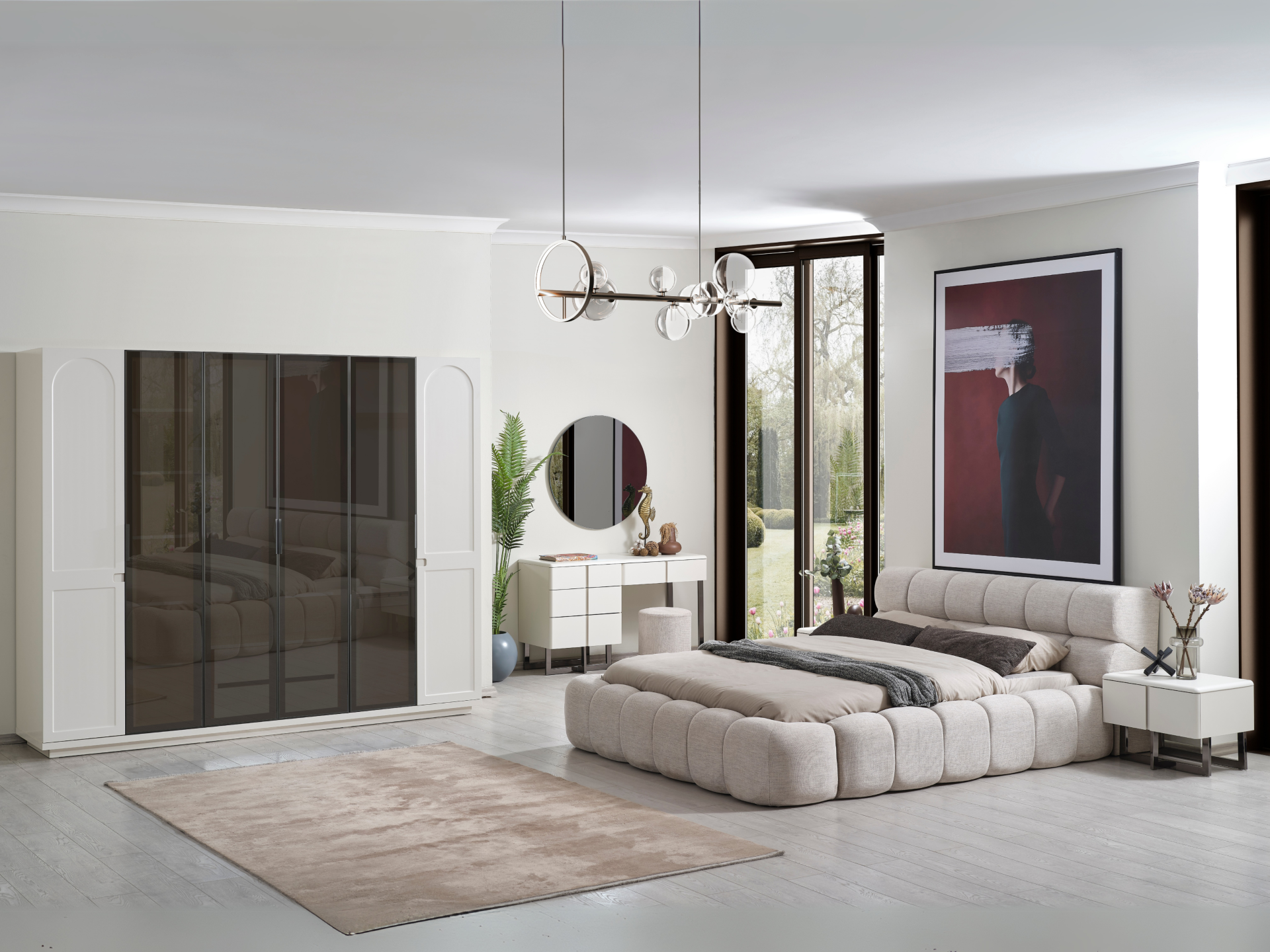 Ürün başlıklı bazalı karyola biçimindedir. Başlık ve karyola çerçevesi sünger üzeri kumaş kaplamadır. Baza fonksiyonel olarak bölümlendirilmiştir.