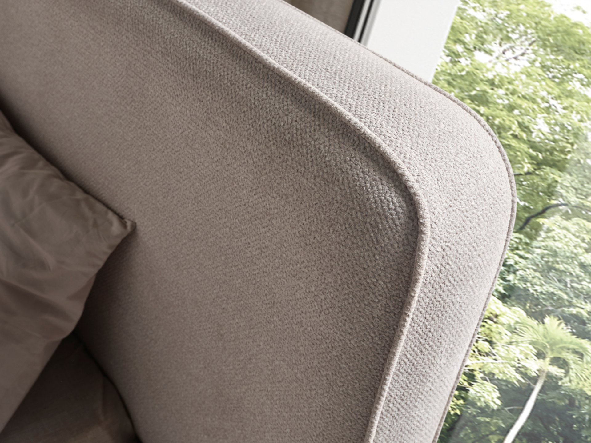 Başlık ve karyola çerçevesi kolay silinebilir antibakteriyel keten karışım şönil kumaşla bezenmiştir. |