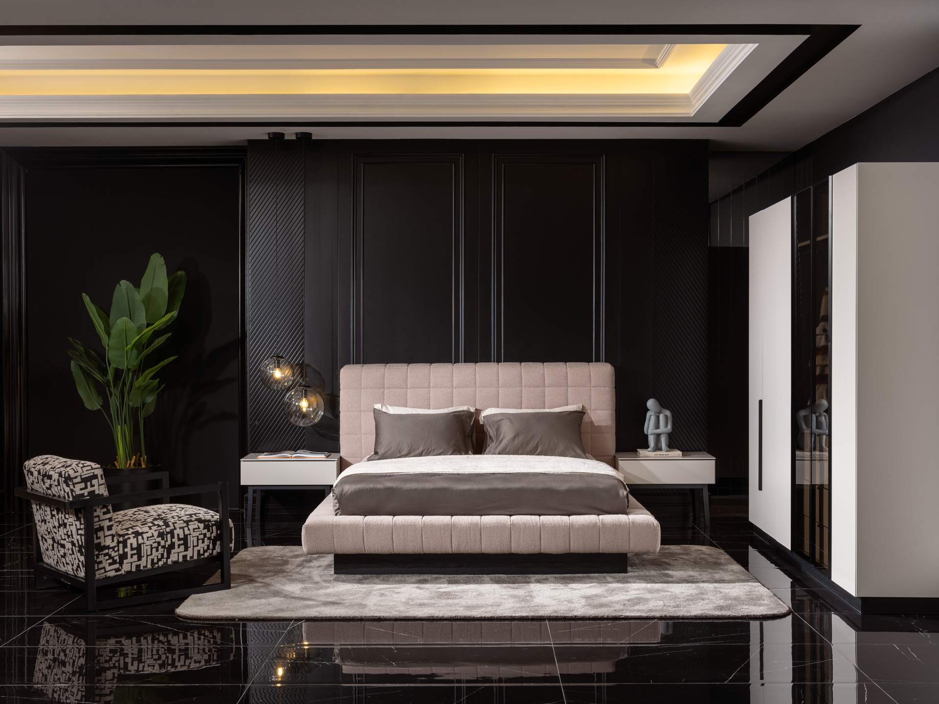 Başlık ve karyola çerçevesi kolay silinebilir antibakteriyel pamuklu, teddy kumaşla bezenmiştir. |