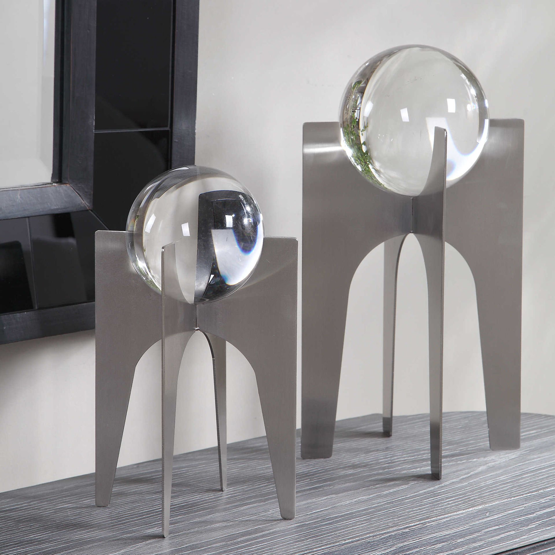 Ürün Tanımı: ELLIANNA SILVER S/2** Ürün Malzemesi: Kristal ve metal malzemeden imal edilmiştir.  Ürün Ölçüleri: 15*15*25.5 cm / 18*18*41 cm   Bakım: Nemli, deterjansız tüy bırakmayan microfiber bezle siliniz.