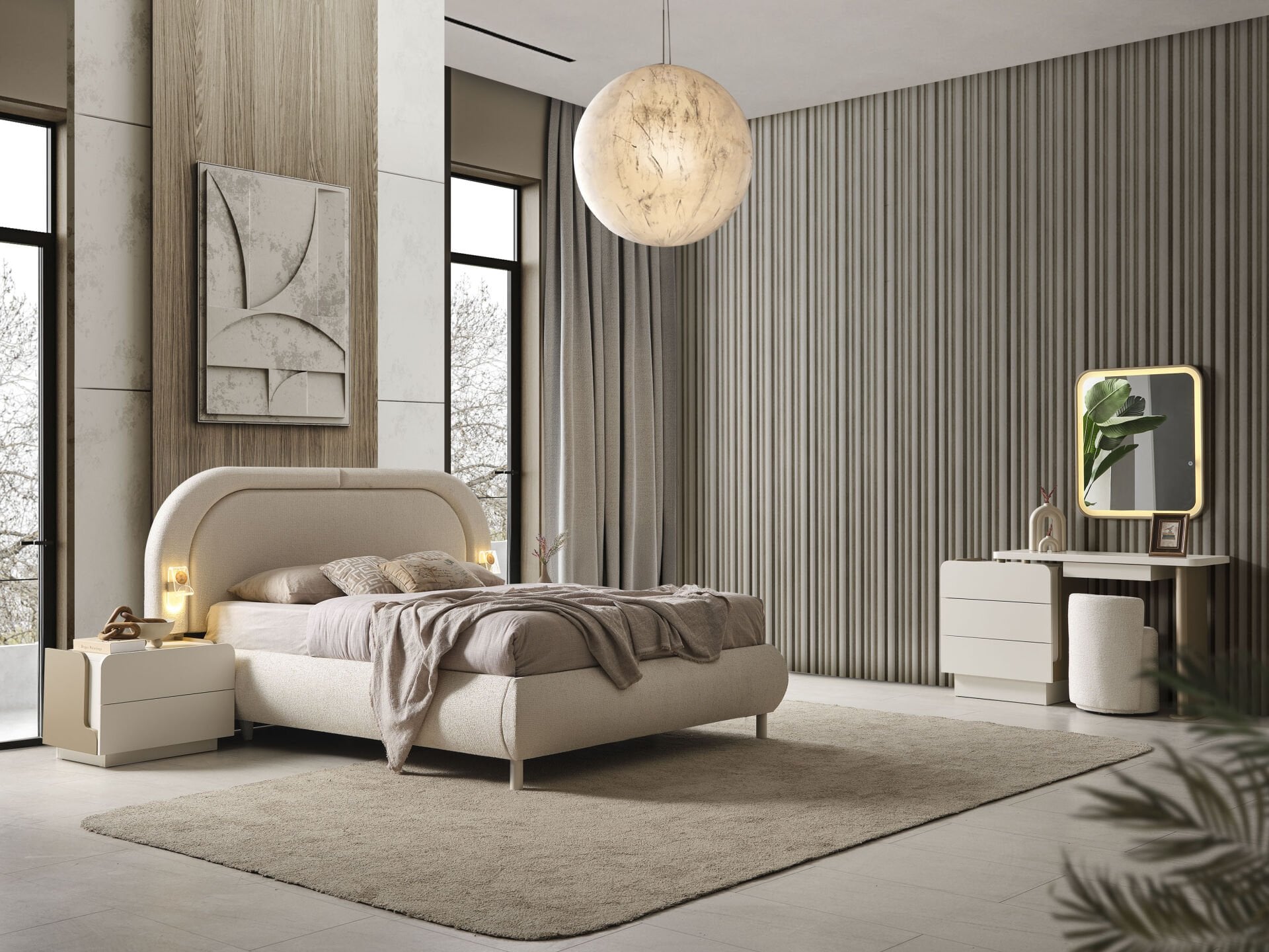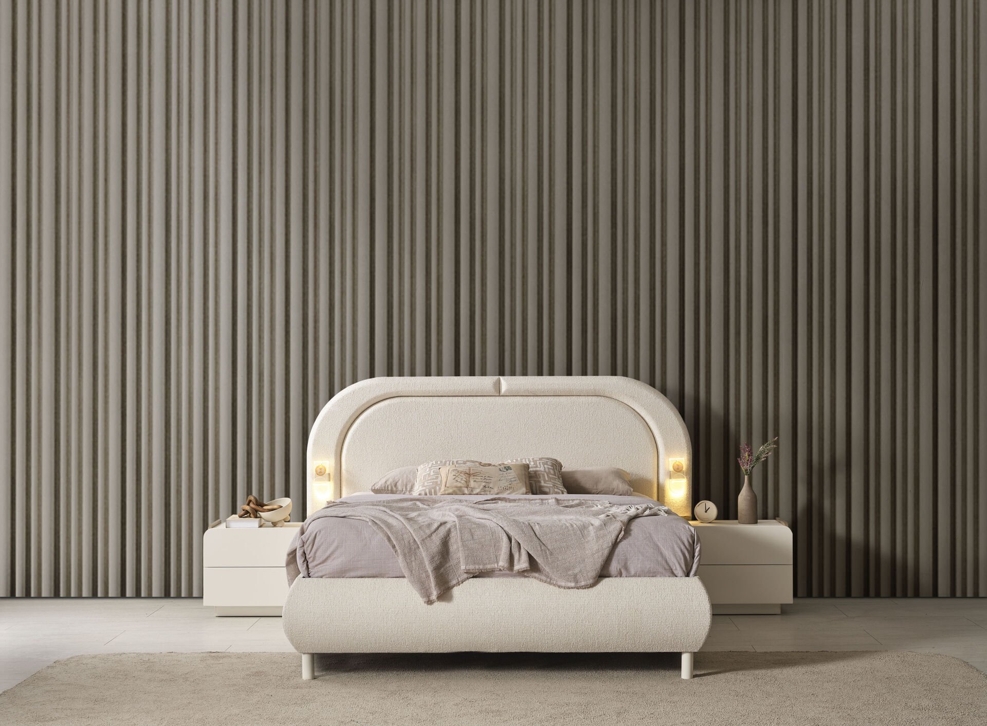 Ürün başlıklı bazalı karyola biçimindedir. Başlık ve karyola çerçevesi sünger üzeri kumaş kaplıdır. Başlık ve karyola çerçevesi yonga-levha malzemedir. Karyola başlığı LED ambiyans aydınlatmalıdır. Gece lambasına lüzum bırakmayacak aydınlığa sahiptir. Baza fonksiyonel olarak bölümlendirilmiştir. |