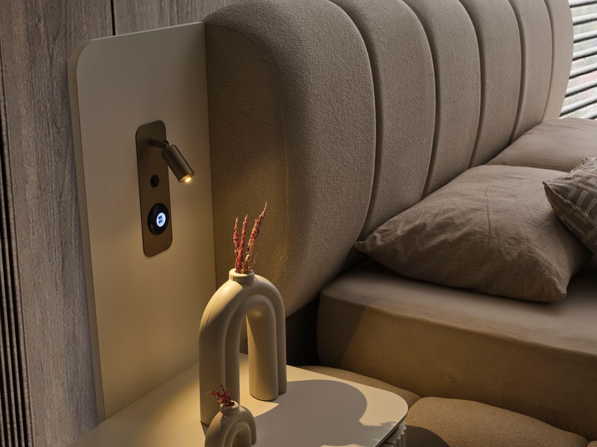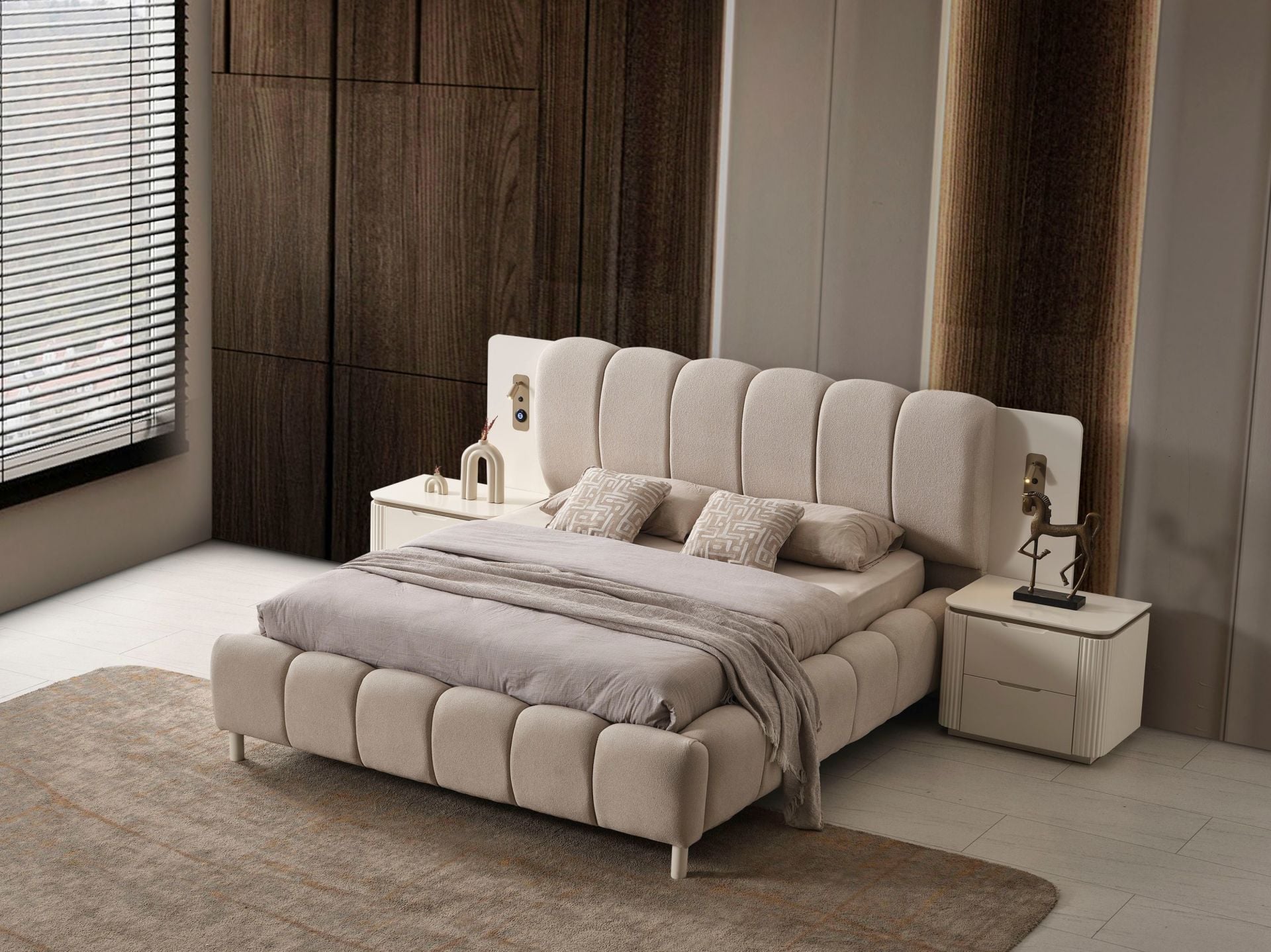 Ürün başlıklı bazalı karyola biçimindedir. Başlık ve karyola çerçevesi sünger üzeri kumaş kaplıdır. Başlık ve karyola çerçevesi yonga-levha malzemedir. Karyola başlığı LED ambiyans aydınlatmalıdır. Gece lambasına lüzum bırakmayacak aydınlığa sahiptir. Karyola başlığın da USB şarj soketi mevcuttur. Baza fonksiyonel olarak bölümlendirilmiştir. |