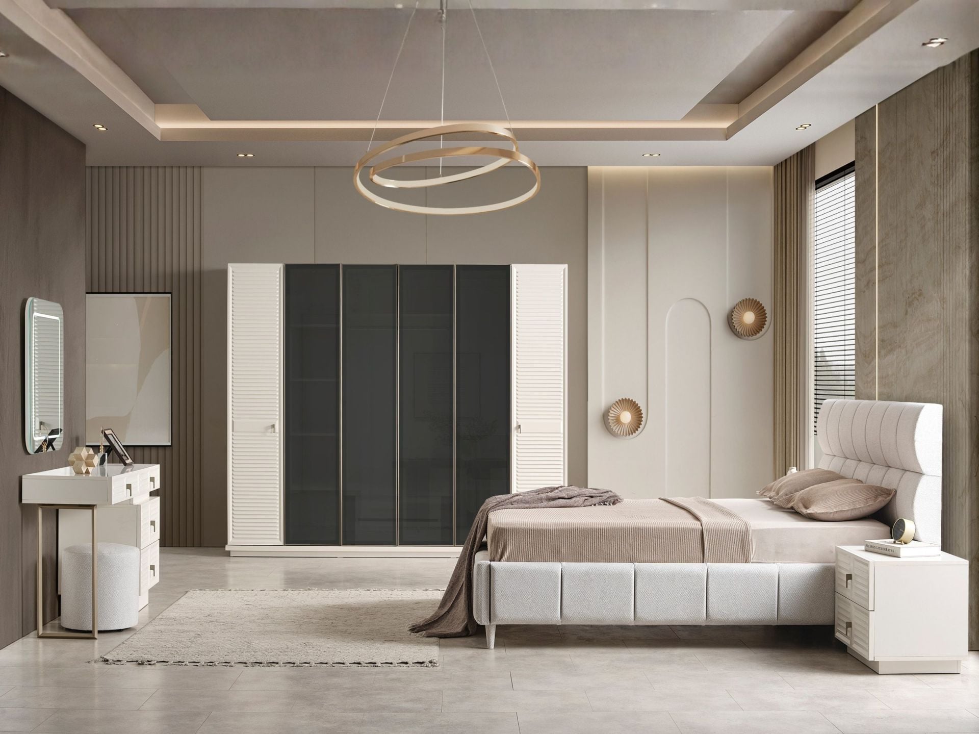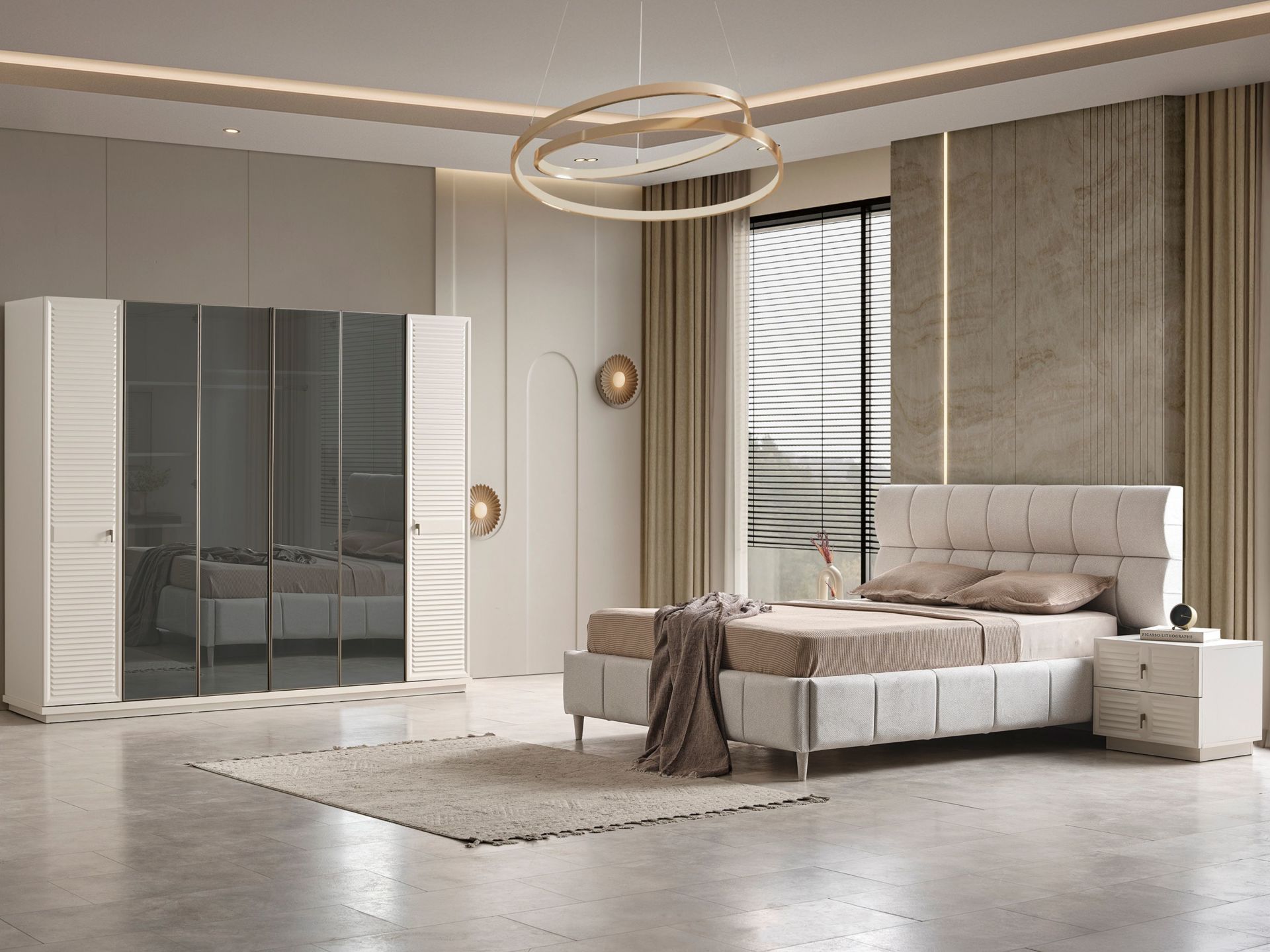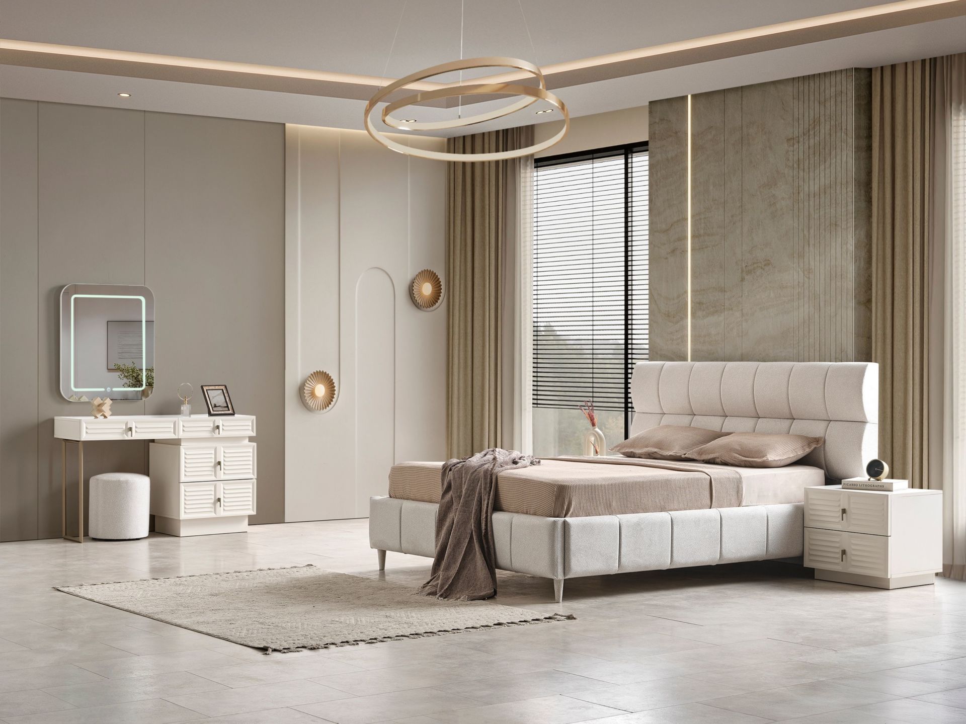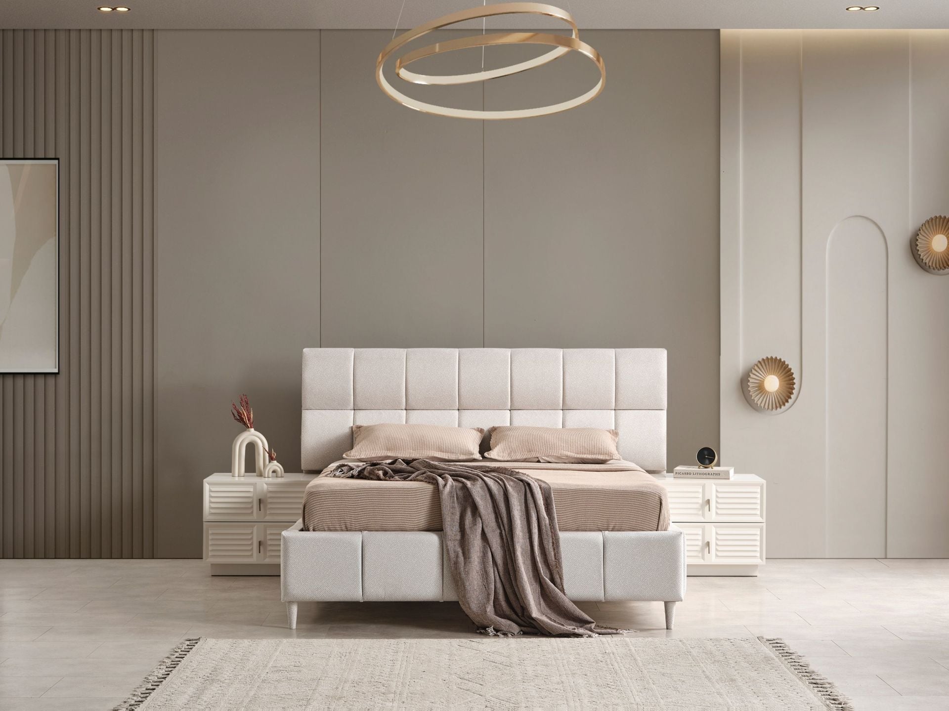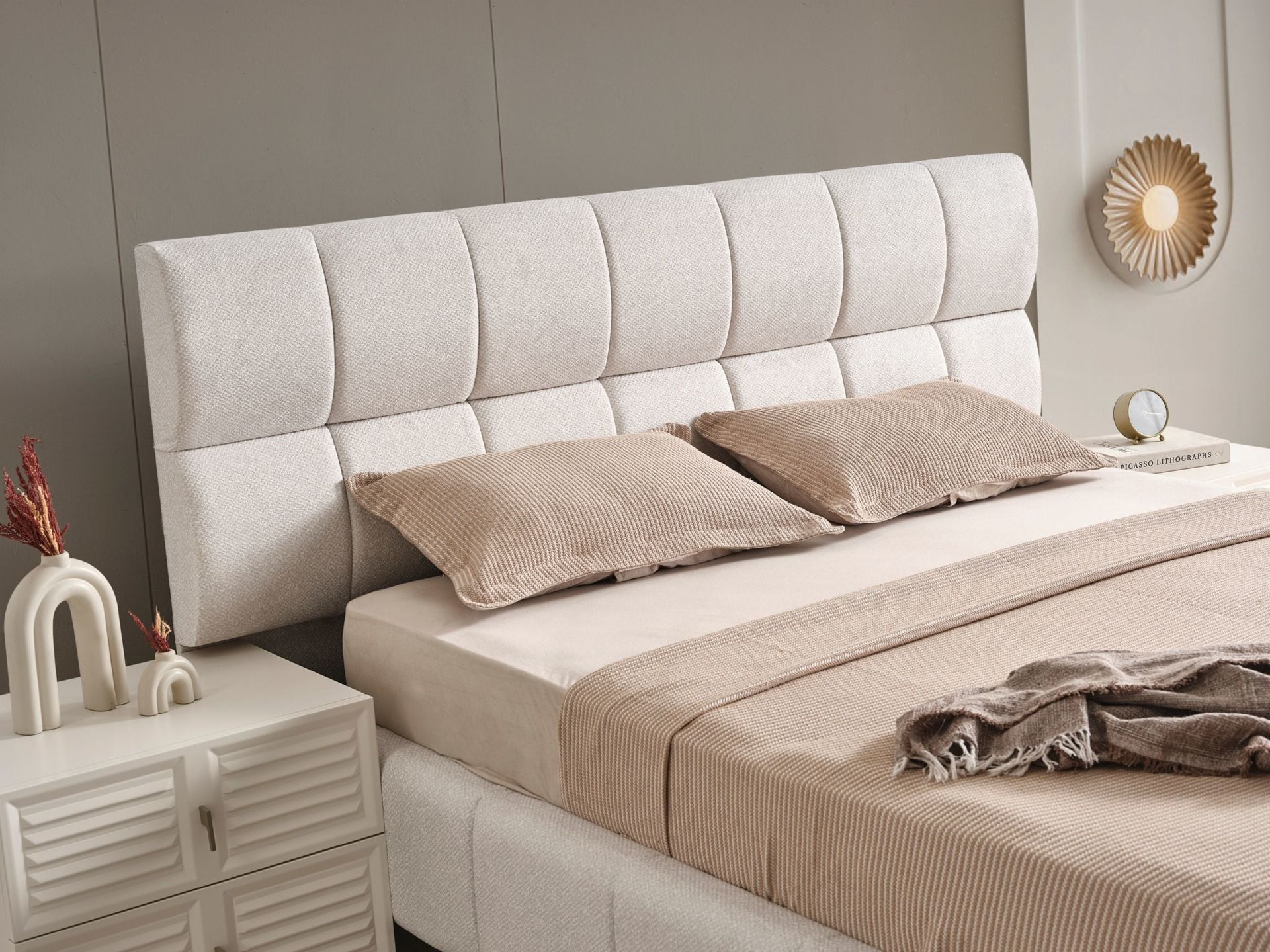 Başlık üzeri ve karyola çerçevesi kolay silinebilir, pamuklu yeni nesil kumaşla bezenmiştir.