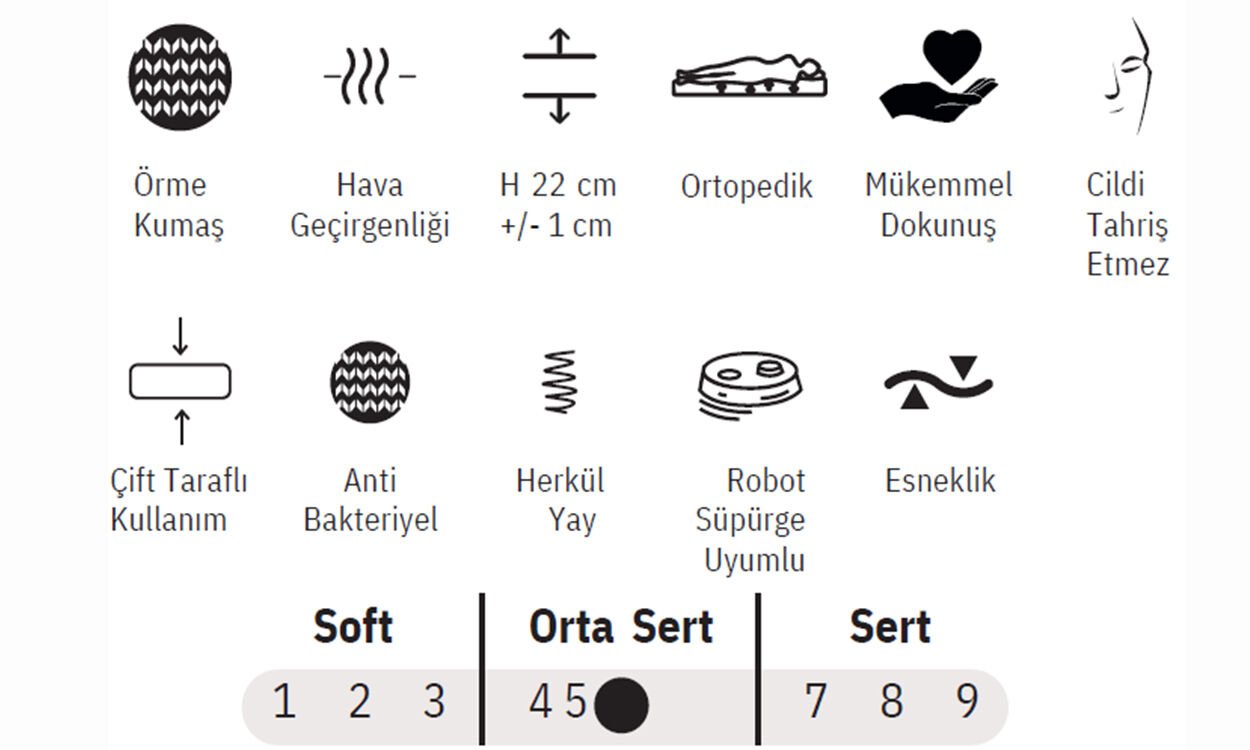 Yatağın ayrıntılı özellikleri görselde mevcuttur.