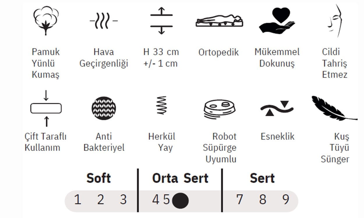 Antialerjik toz ve leke tutmayan bir özelliğe sahiptir.