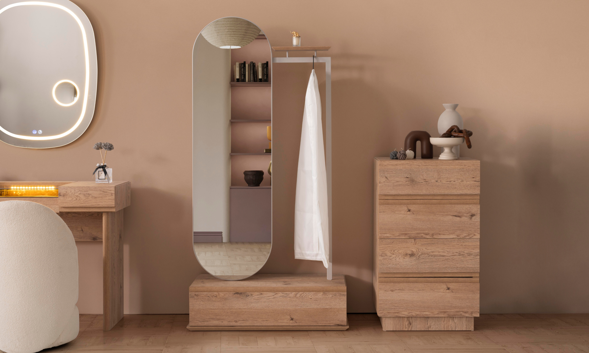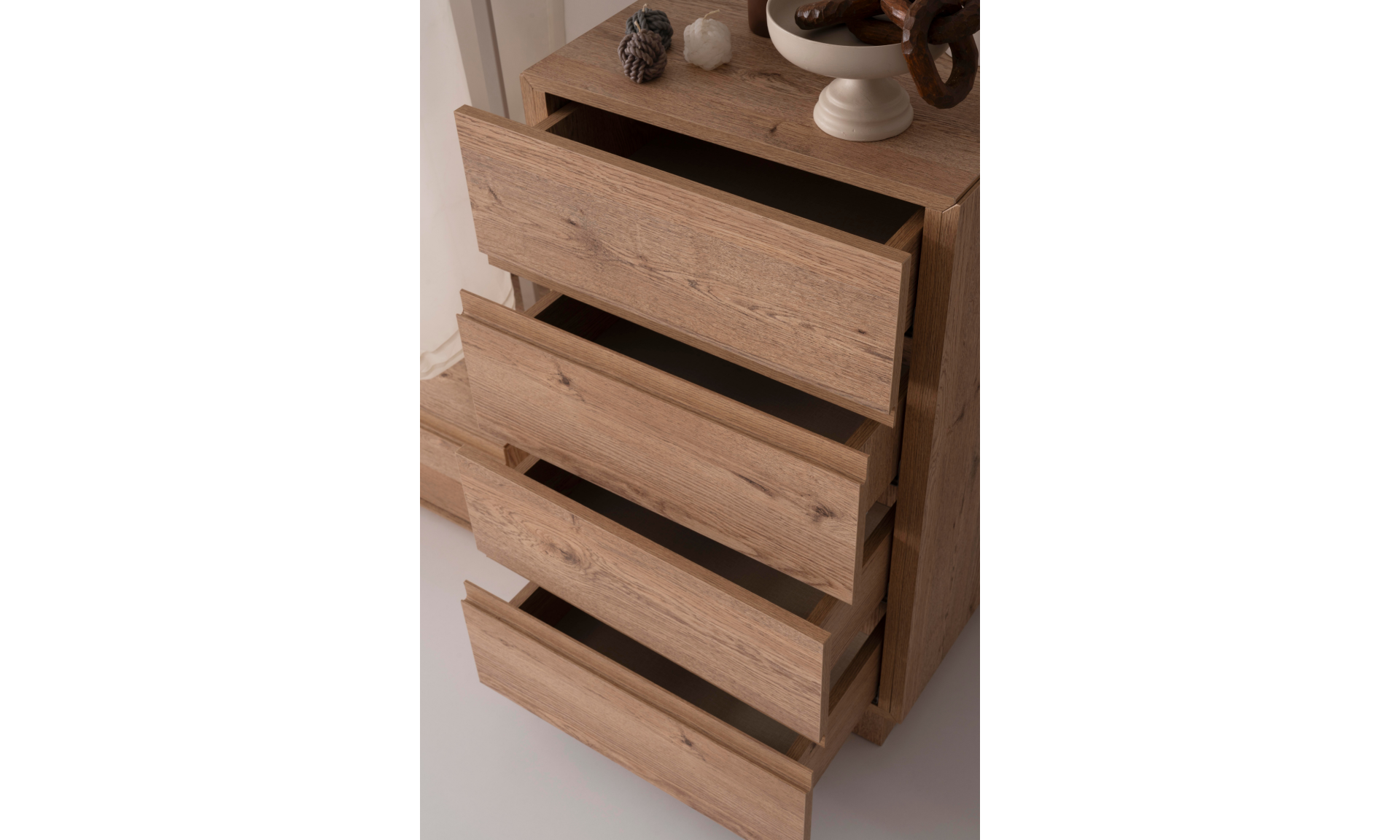 MDF malzemeden imal edilmiştir. Tüm görünür yüzeyler MDF malzeme üzeri mukavemete dayanıklı kaplama şeklindedir. Dört çekmeceli olarak imal edilmiştir.