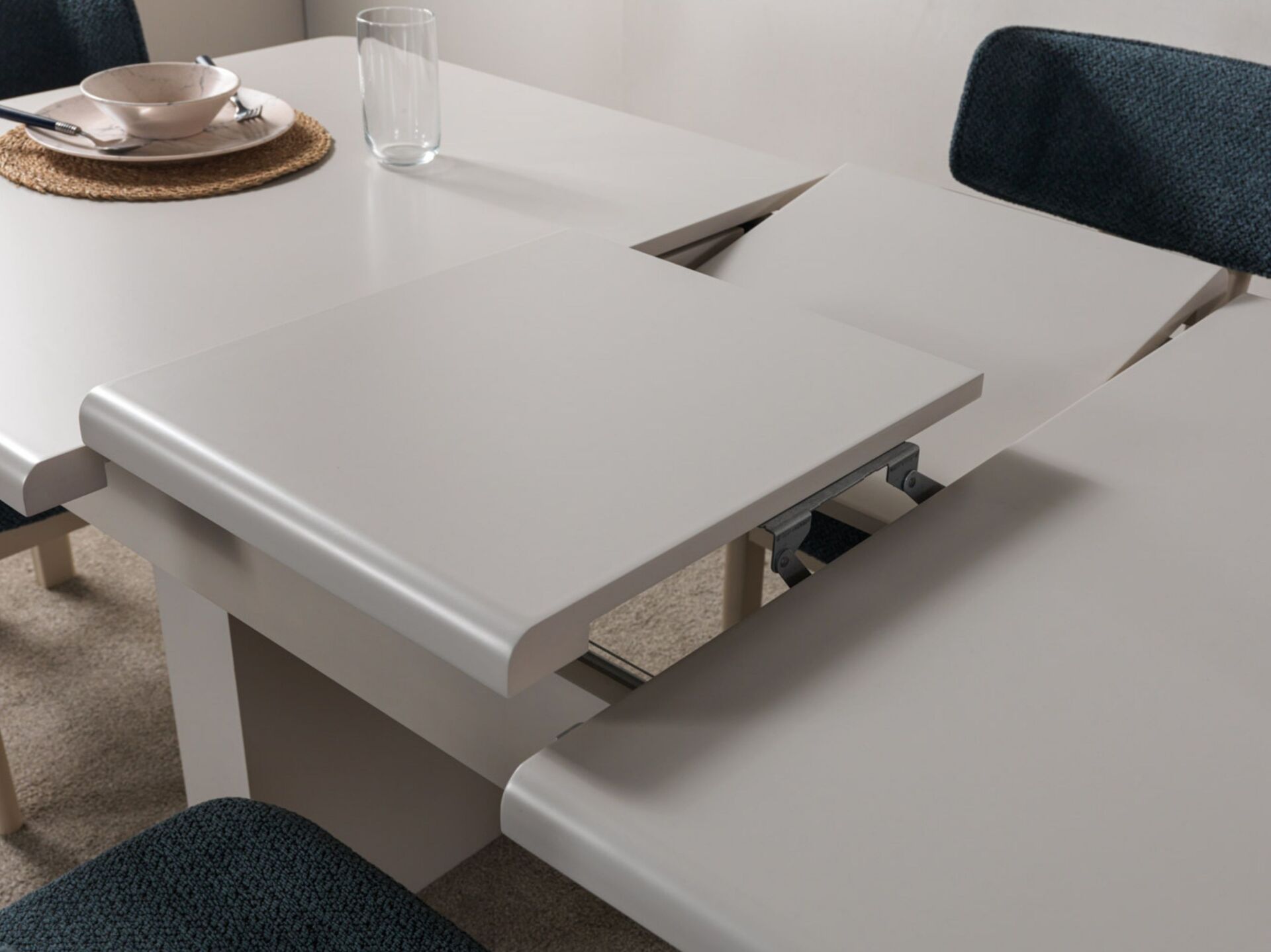 Tabla MDF malzemeden mamuldür ve yeni nesil boyama tekniği ile boyanarak üretilmektedir. Ayaklar MDF malzemeden üretilmiştir. Masa açılabilir özellikte üretilmiştir.