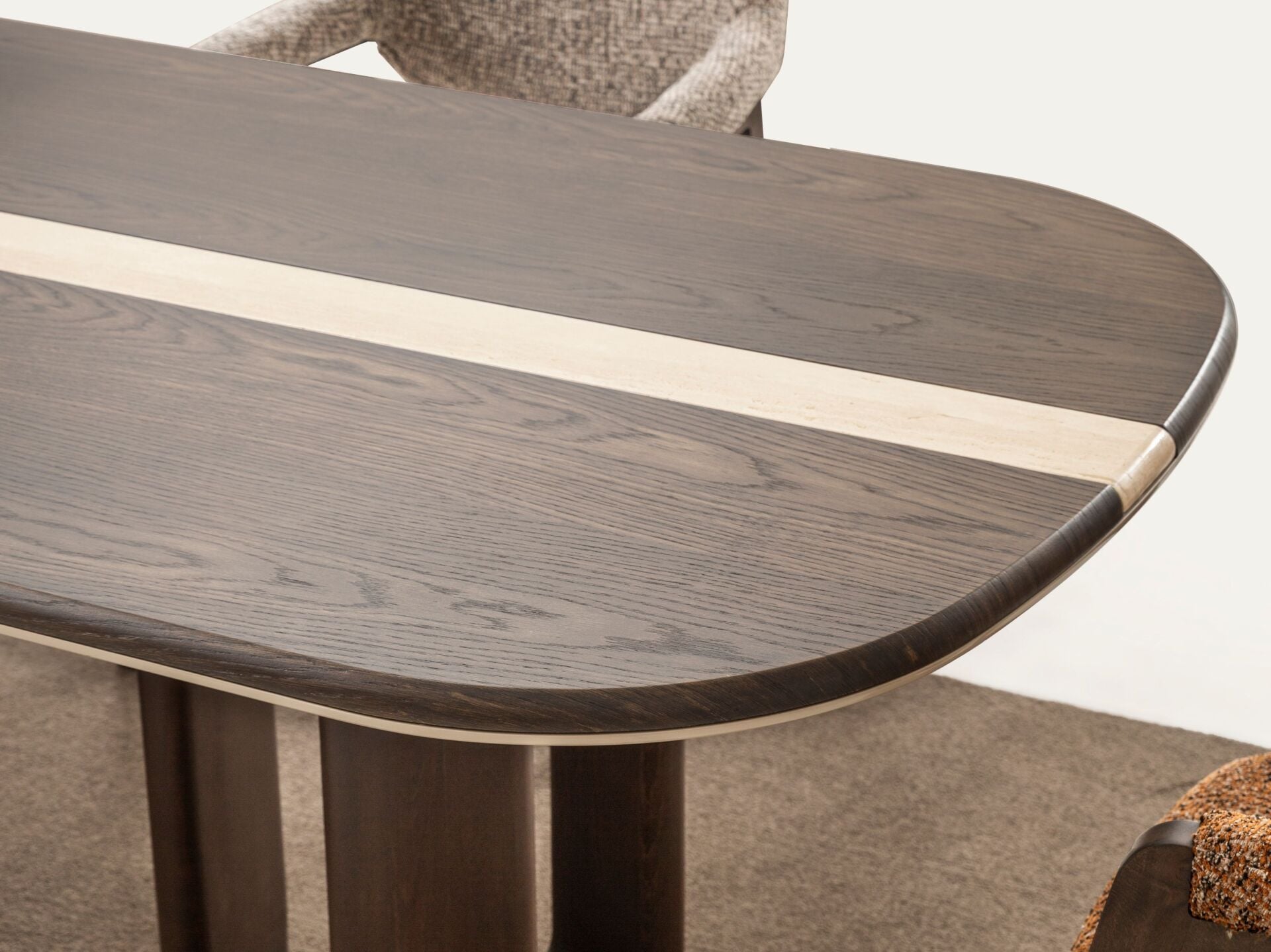 Tabla MDF malzemeden mamuldür ve yeni nesil ahşap desen baskı ile giydirilmiştir. Ayaklar dış budak kaplama MDF malzemeden üretilmiştir. Masa sabit özellikte üretilmiştir.