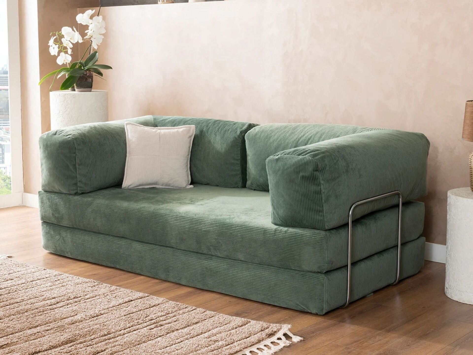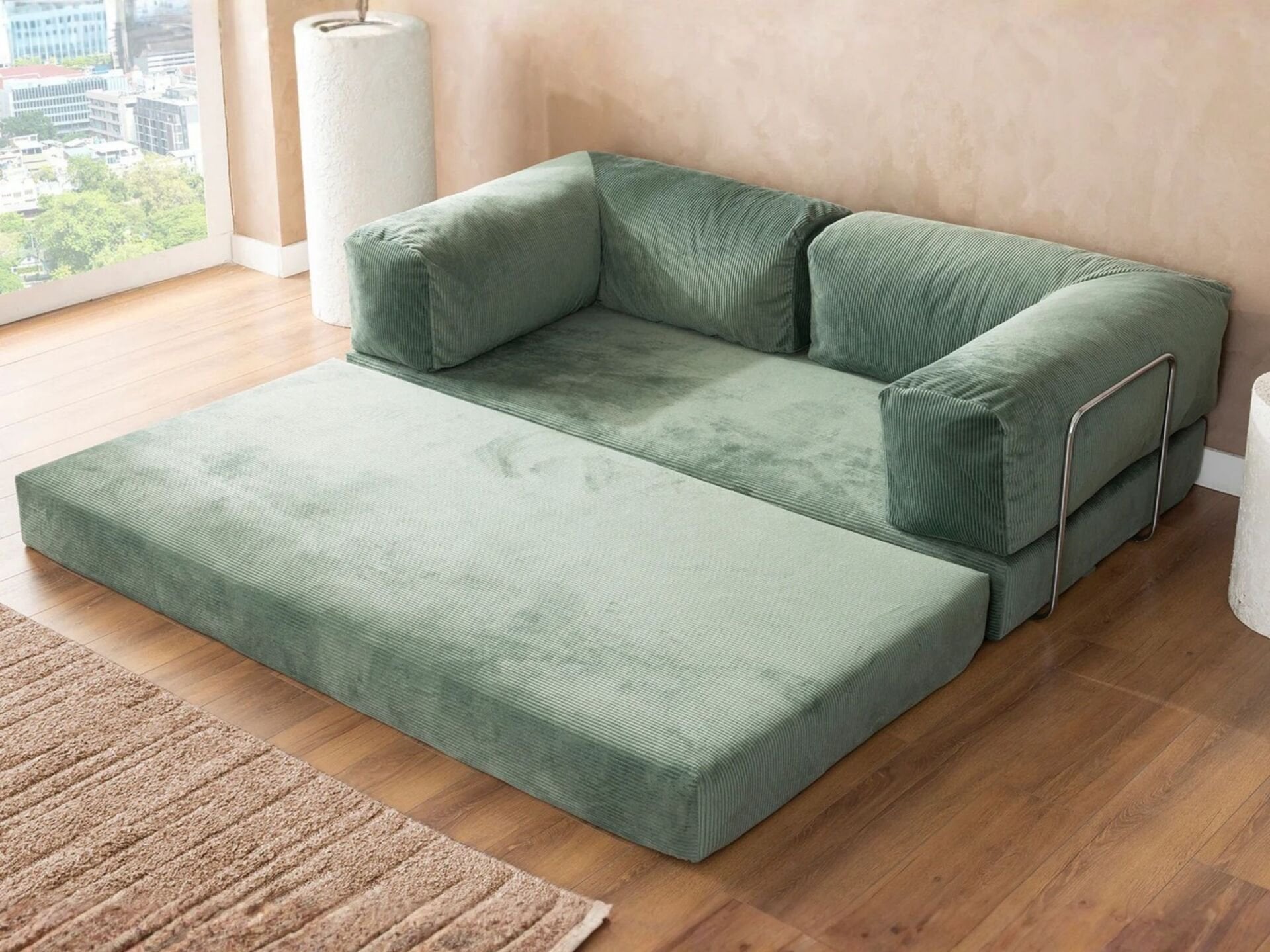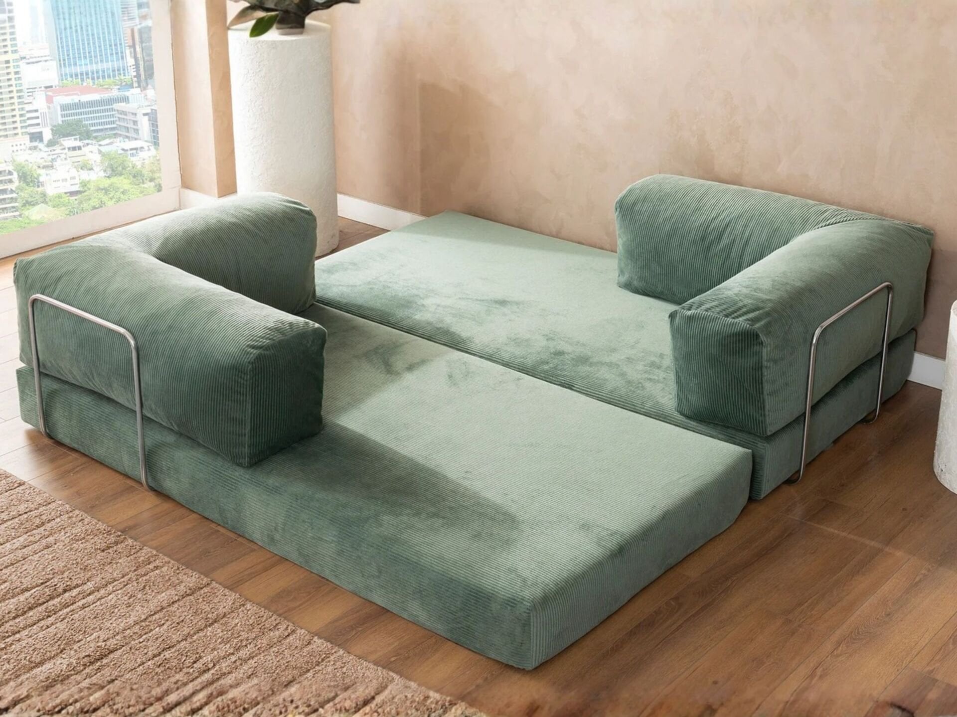 Pratik bir mekanizmaya sahiptir. Oturma alanı öne doğru çekilerek kolayca çift kişilik bir yatağa dönüştürülebilir.