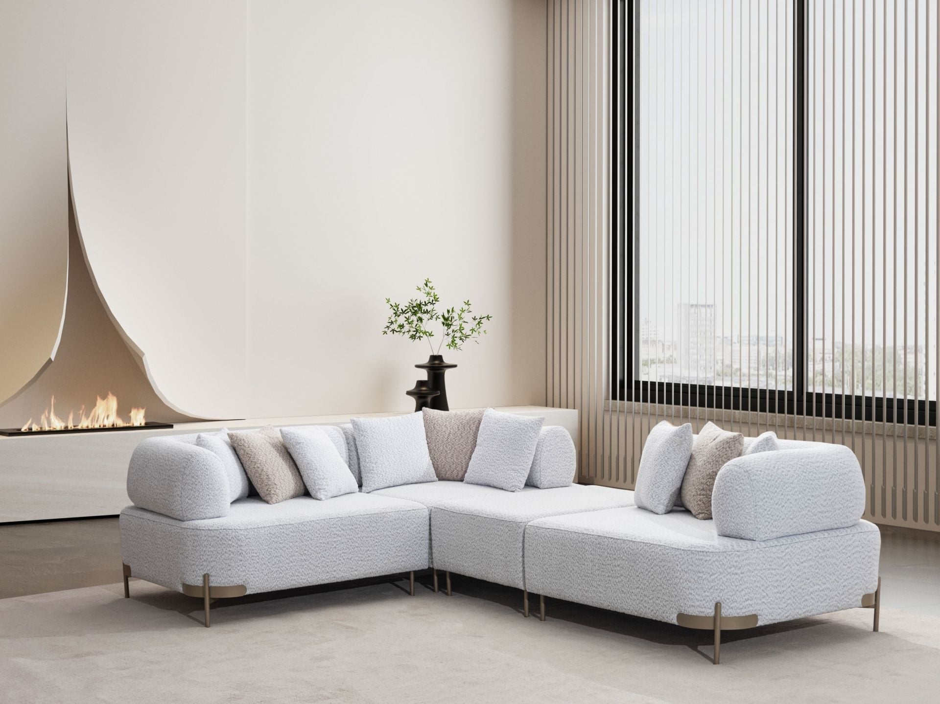 Takım içeriği 1 adet köşe koltuktan müteşekkirdir. 1 adet köşe modül 2 adet kollu modül ve bir adet ara modülden oluşmaktadır. Dilediğiniz kadar arttırabilirsiniz.