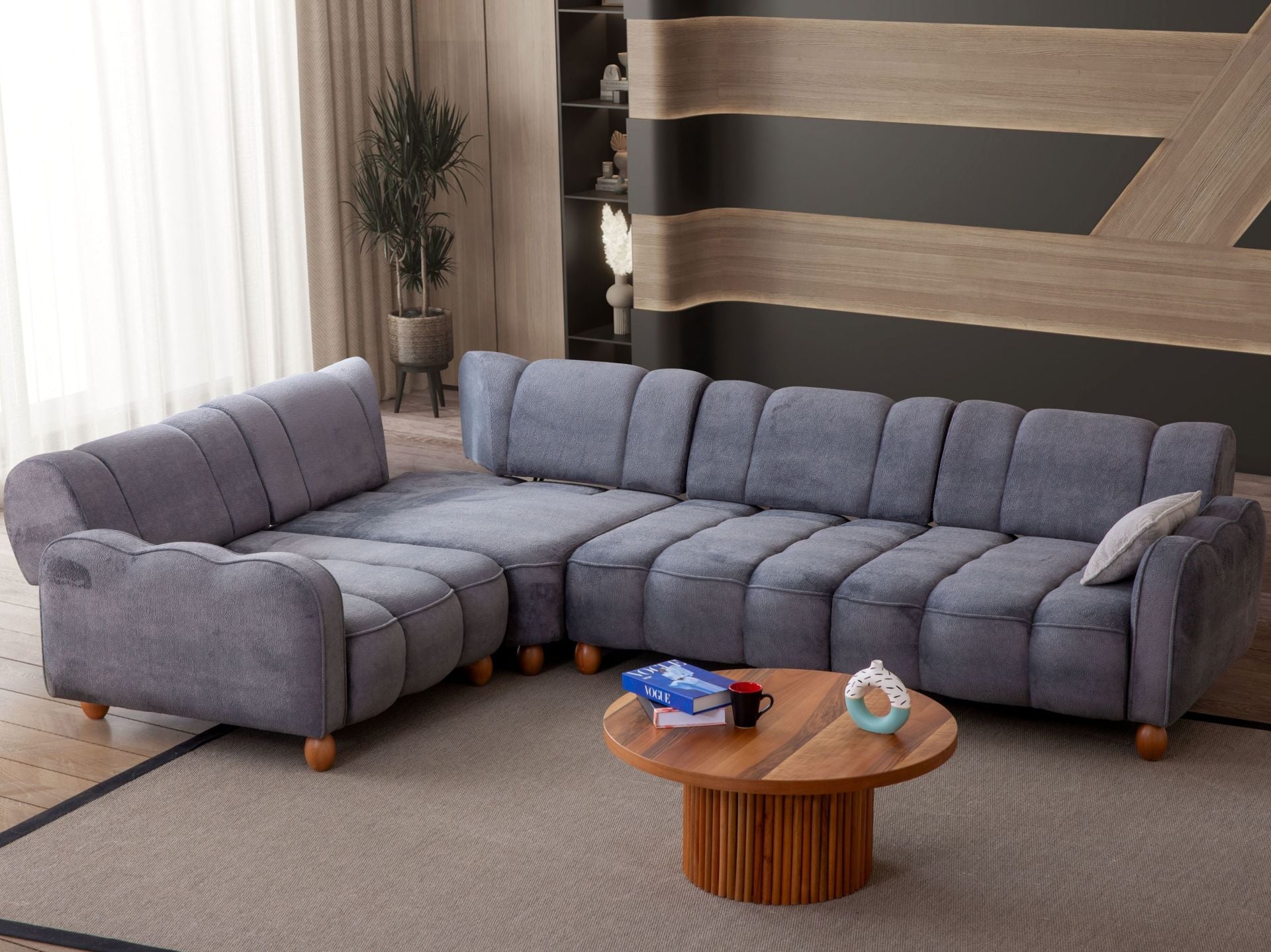 Ürün modüler olarak birbirinden ayrılabilir..Görsellerdeki takım standart versiyondur. Daha geniş versiyonunu ürettirmek isterseniz müşteri temsilcilerimizden bilgi alabilirsiniz. Kumaş türü, renk ve ölçü gibi hususlarda değişiklik talebiniz olursa dilediğiniz vakit müşteri temsilcilerimize iletebilirsiniz. Ölçü değişikliği her ürün için mümkün olmayabilir. Yastıklar takıma dahildir.