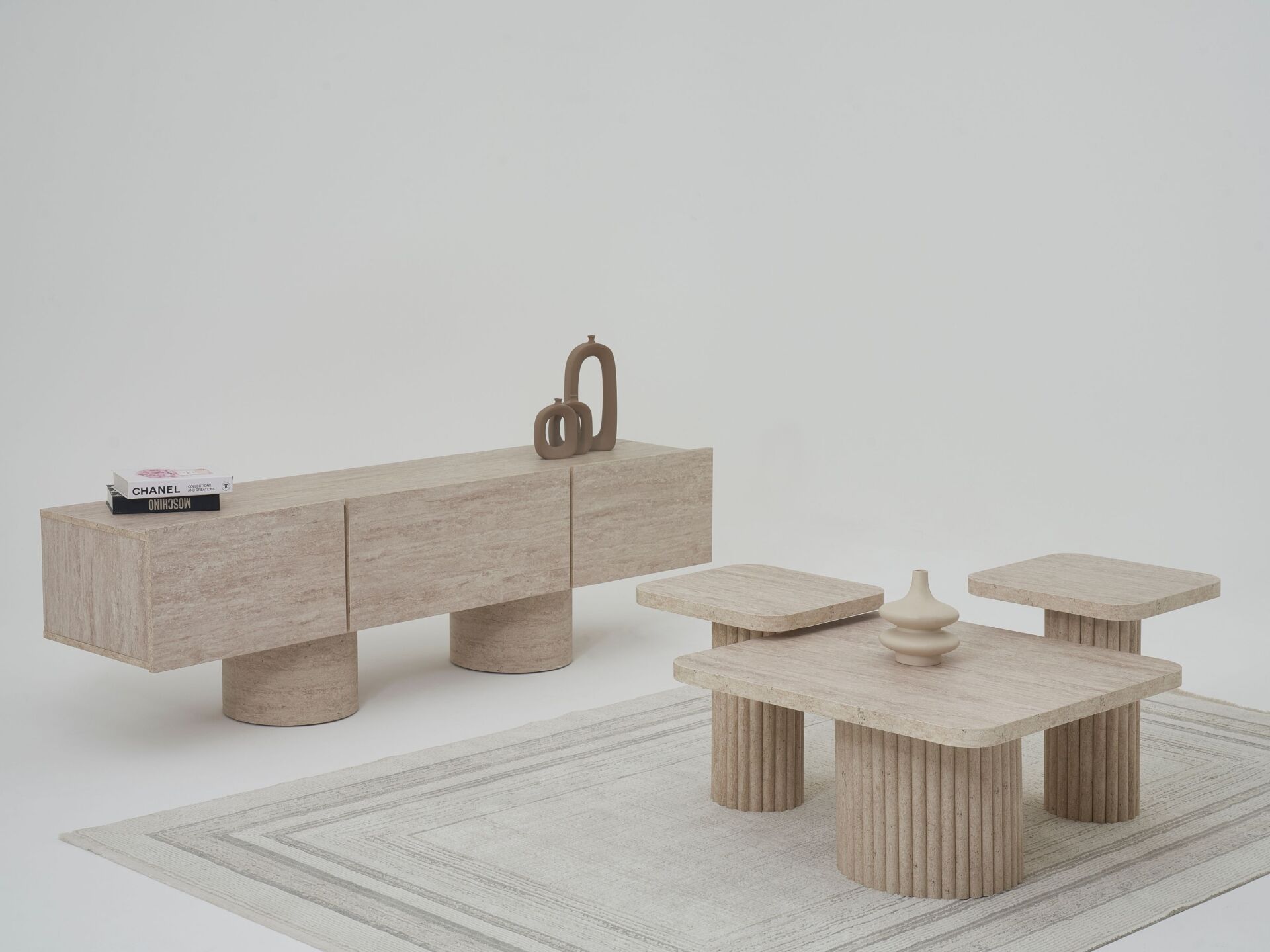 Üst tabla, çekmeceler ve dış görünür yüzeyler MDF malzemeden imal edilmiştir. 2 adet raflı –kapaklı bölmeye ve 1 adet çekmeceye sahiptir. Üst tabla, yeni nesil mermer desen baskılı olarak imal edilmiştir. Kabarma yapmaz, solma görülmez, mukavemete dayanıklıdır. Ayak bağlantıları ahşap malzeme olup yeni nesil boyalı olarak imal edilmiştir.