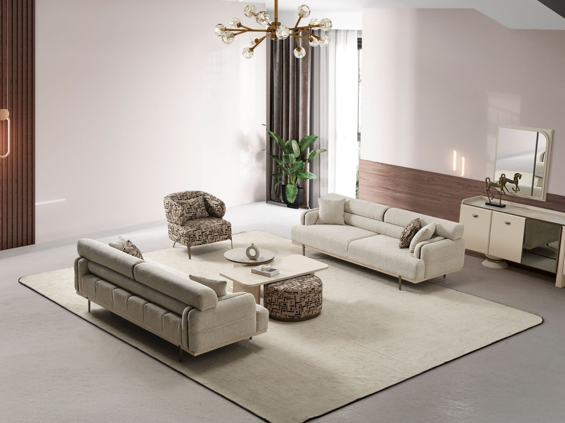Görünür oturum altı bölgeler cilalanmış, ahşap dekor ile detaylandırılmıştır. Kumaş türü, renk, ölçü gibi hususlarda değişiklik talebiniz olursa dilediğiniz vakit müşteri temsilcilerimize iletebilirsiniz. Ölçü değişikliği her ürün için mümkün olmayabilir. Yastıklar takıma dahildir.