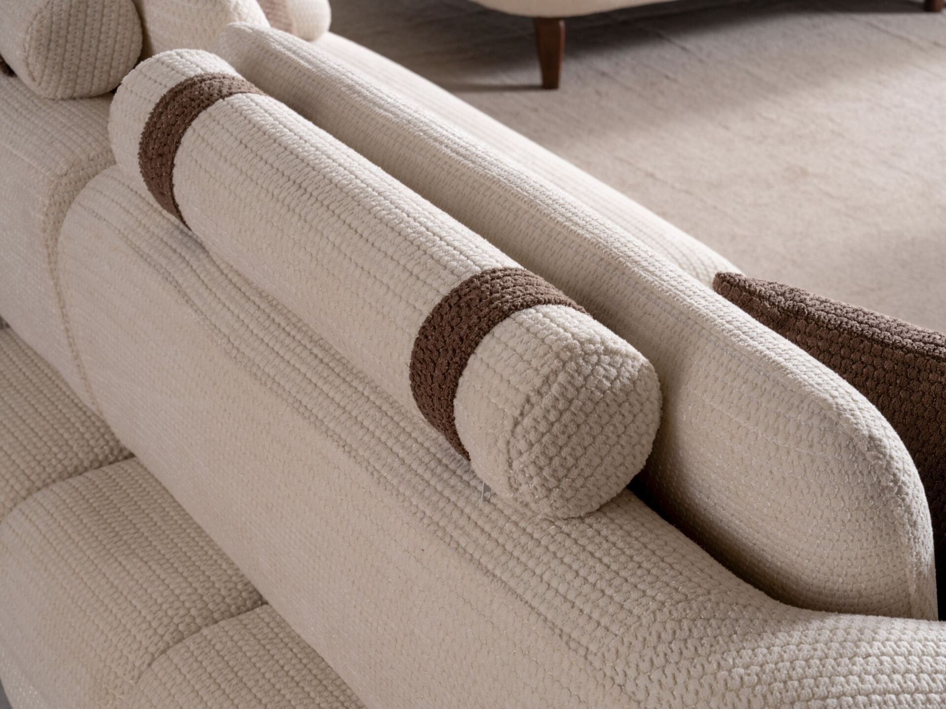 Görünür oturum altı bölgeler cilalanmış, ahşap dekor ile detaylandırılmıştır. Kumaş türü, renk, ölçü gibi hususlarda değişiklik talebiniz olursa dilediğiniz vakit müşteri temsilcilerimize iletebilirsiniz. Ölçü değişikliği her ürün için mümkün olmayabilir. Yastıklar takıma dahildir.