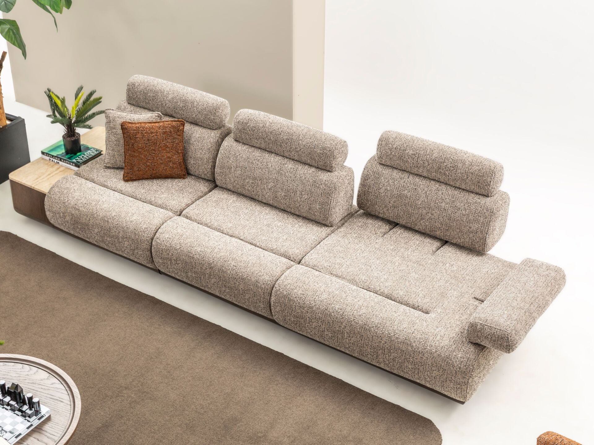 Sırtlık minderleri geriye kaydırarak tek kişilik yatak haline getirilebilir, ayrıca kol mekanizması sayesinde daha geniş kullanım alanı sunar.