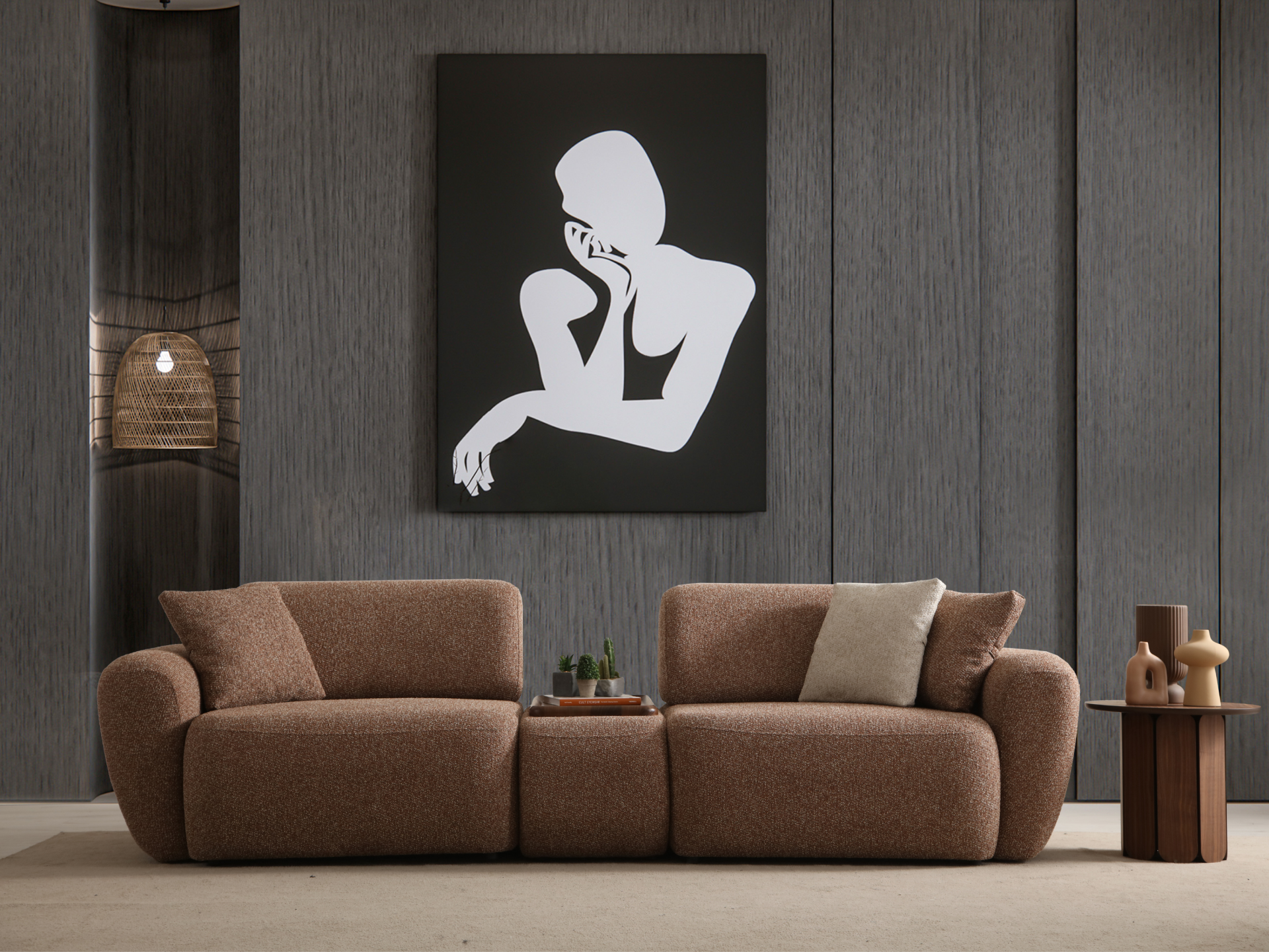 Dörtlü koltuk modüler olarak üretilmektedir. Modüller arasında 1 adet sehpalı puf modül yer alır. Dörtlü koltuk ve üçlü koltuk arasında herhangi bir fiziksel farklılık yoktur. Yalnızca ölçüler ve modül sayıları farklıdır. Kumaş türü, renk, ölçü gibi hususlarda değişiklik talebiniz olursa dilediğiniz vakit müşteri temsilcilerimize iletebilirsiniz. Ölçü değişikliği her ürün için mümkün olmayabilir. Yastıklar takıma dahildir. |