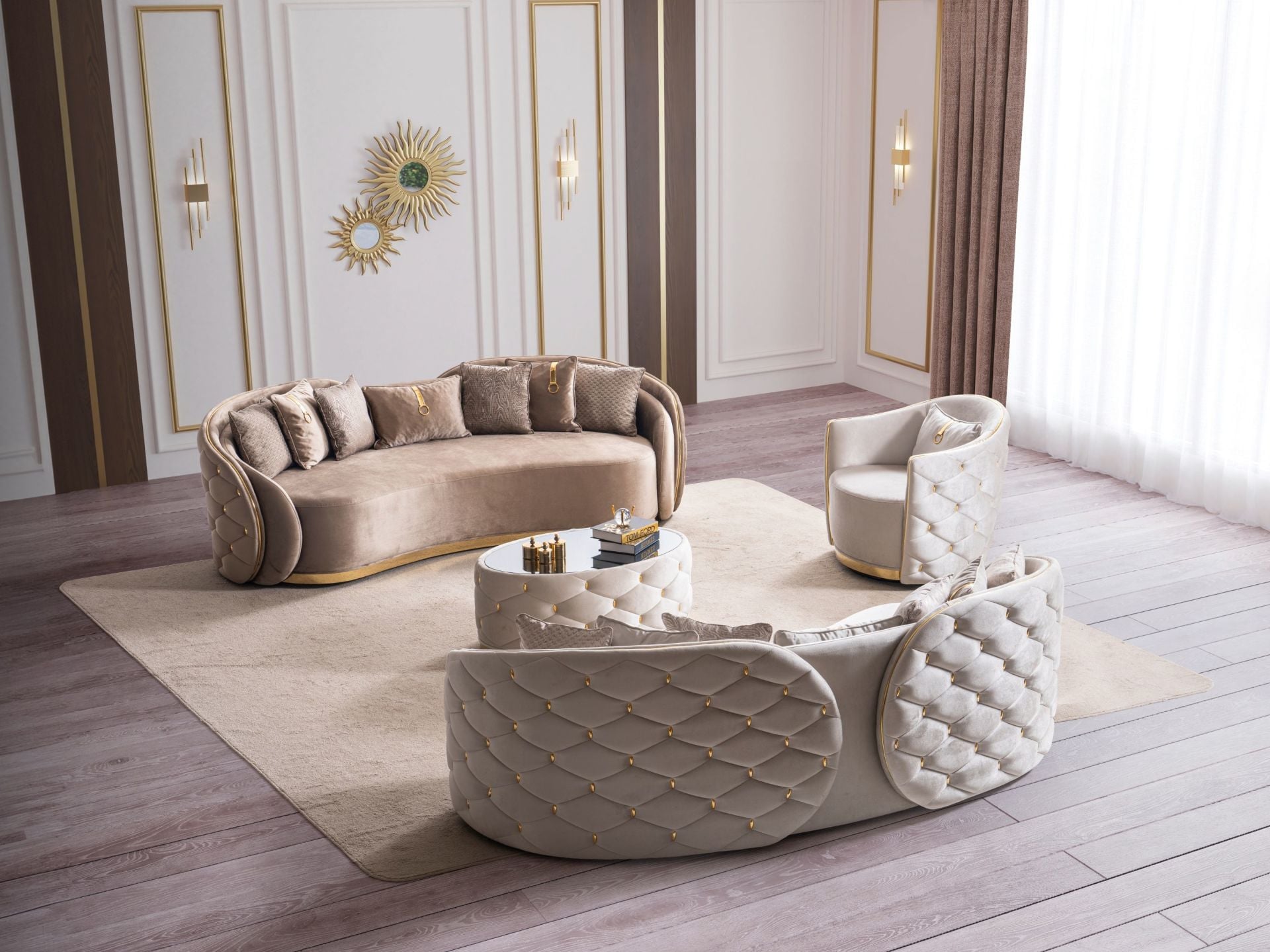 Takım içeriği 1 adet dörtlü koltuktan müteşekkildir. Diğer varyasyonları seçenekler içerisinden tercih edebilir ya da kendi istediğiniz kombinasyonu oluşturarak müşteri temsilcimize iletebilirsiniz. |