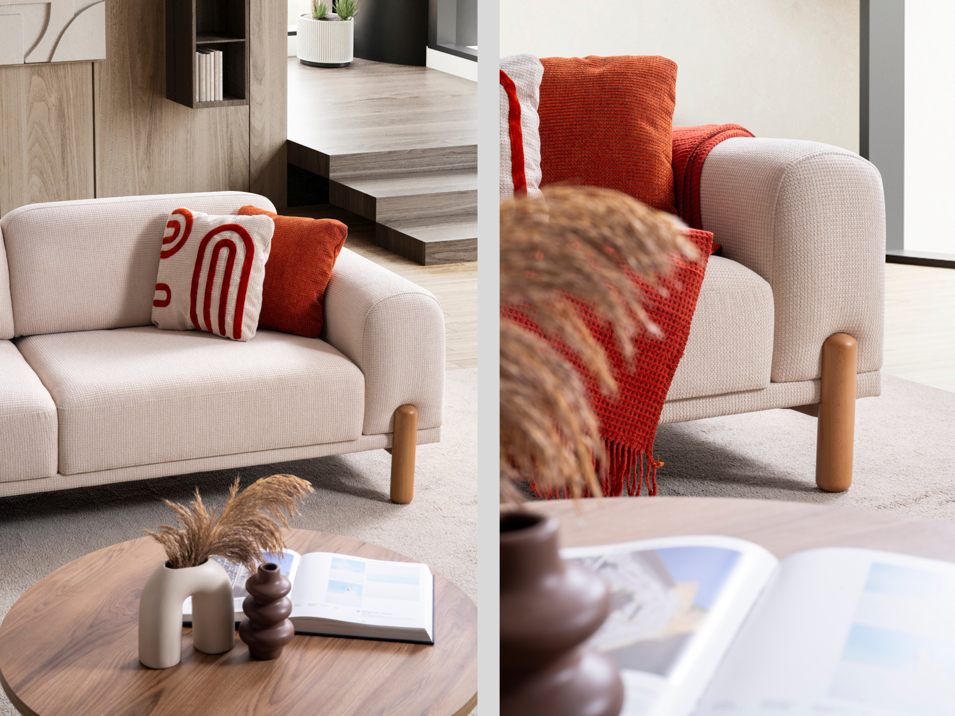Dörtlü koltuk ve üçlü koltuk arasında herhangi bir fiziksel farklılık yoktur. Yalnızca ölçüler ve modül sayıları farklıdır. Kumaş türü, renk, ölçü gibi hususlarda değişiklik talebiniz olursa dilediğiniz vakit müşteri temsilcilerimize iletebilirsiniz. Ölçü değişikliği her ürün için mümkün olmayabilir. Yastıklar takıma dahildir.