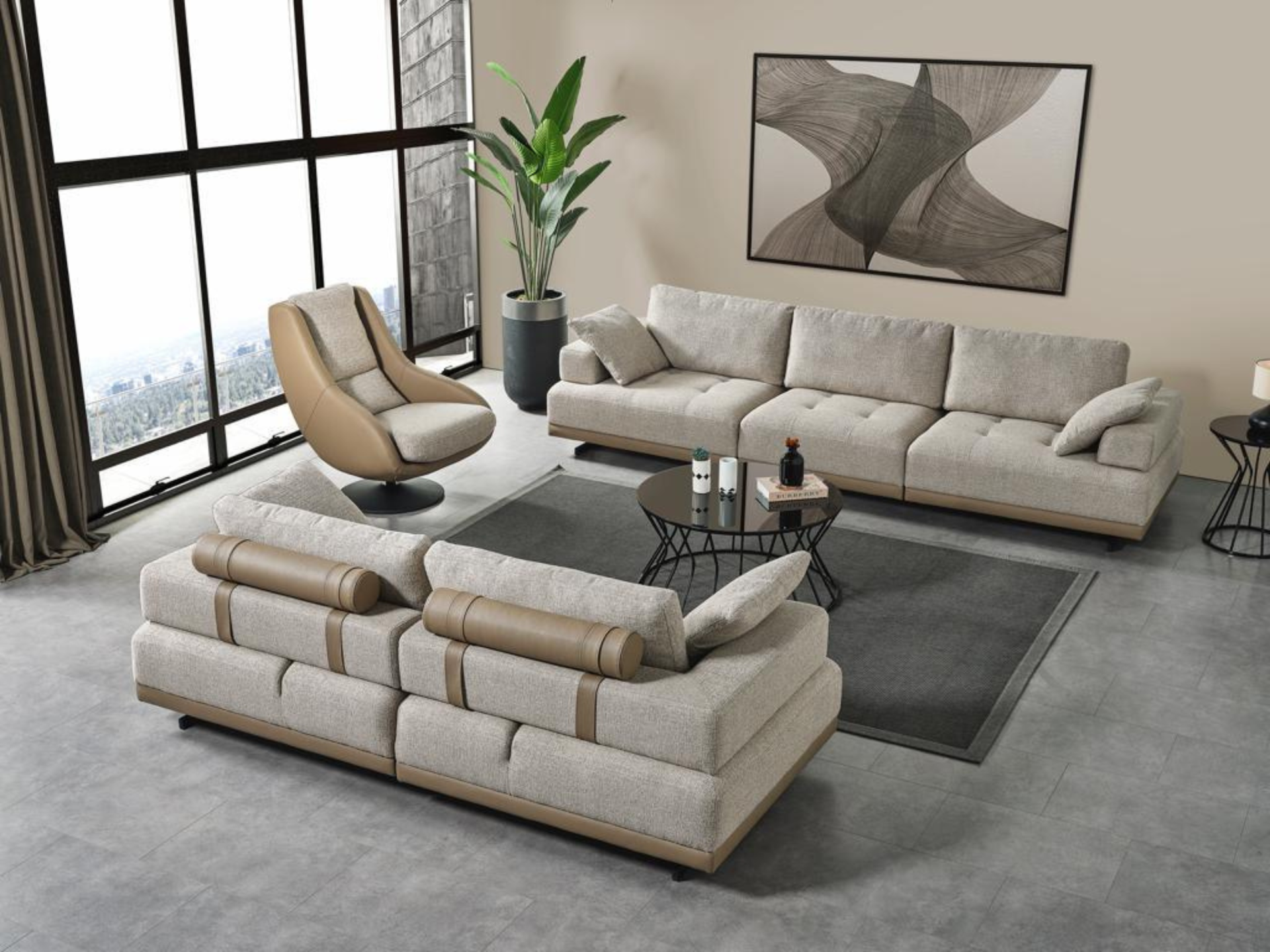 Koltuk, modüllerden husule gelmiştir. Ürünü modüller arasında bulunan kelepçe yardımıyla rijit bir dörtlü koltuk haline getirebilirken dilerseniz modüler parçalara ayırarak modülleri evin dilediğiniz köşesine de yerleştirebilirsiniz. Dörtlü koltuk ve üçlü koltuk arasında herhangi bir fiziksel farklılık yoktur. Yalnızca ölçüler ve modül sayıları farklıdır. Kumaş türü, renk, ölçü gibi hususlarda değişiklik talebiniz olursa dilediğiniz vakit müşteri temsilcilerimize iletebilirsiniz. Ölçü değişikliği her ürün için mümkün olmayabilir. Yastıklar takıma dahildir.